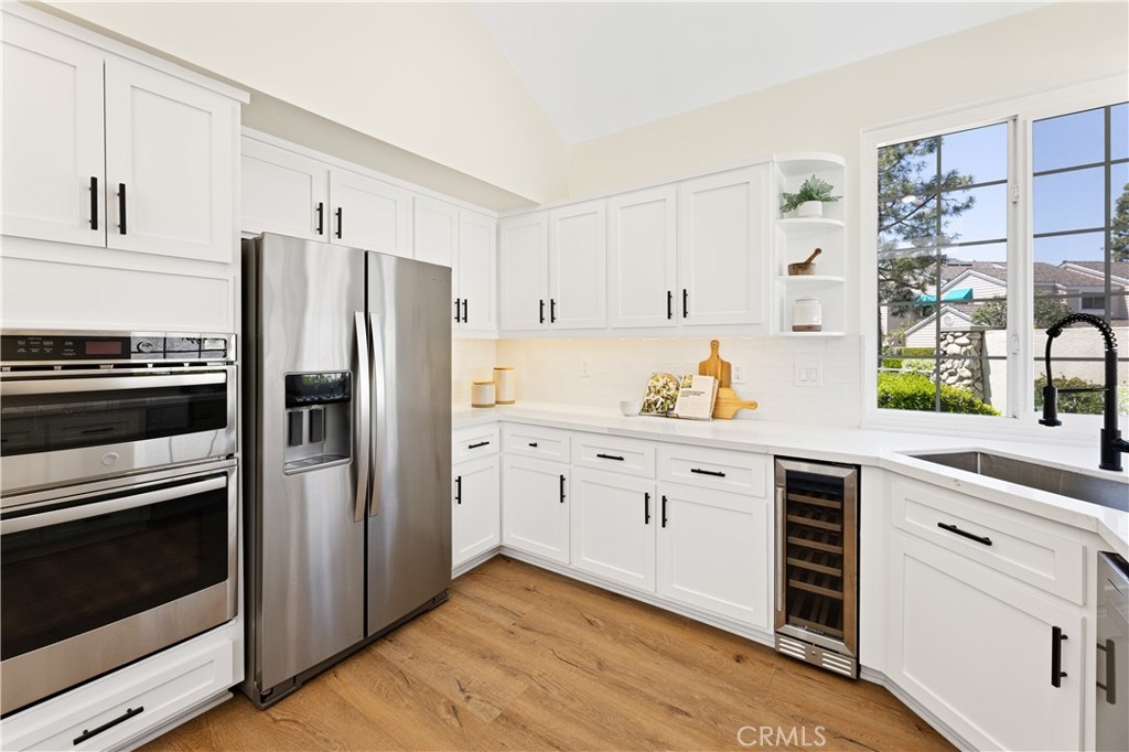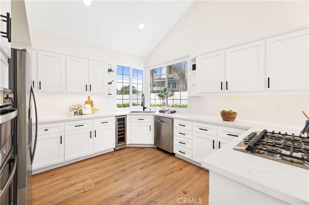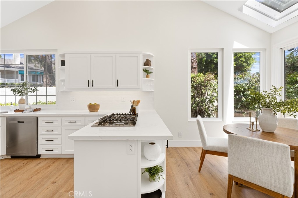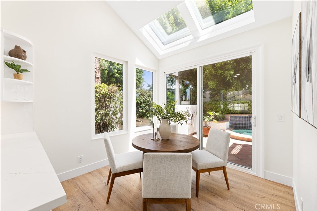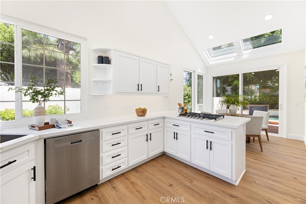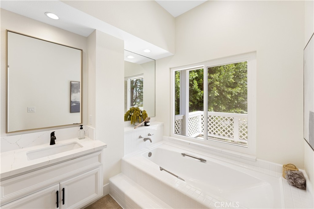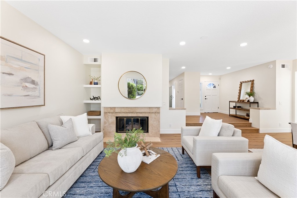 Behind the gates of one of Woodbridge’s most coveted communities—The Cove—this newly renovated home offers breathtaking lake views and exceptional privacy. Thoughtfully updated throughout, the residence features a brand-new gourmet kitchen with sleek cabinetry, quartz countertops, designer tile backsplash, stainless steel appliances, and modern recessed lighting. The open-concept layout includes a sunlit breakfast nook with skylights and a sliding door to the backyard, a formal living and dining room with a custom stone fireplace and built-ins, and a separate family room with an upgraded media wall. Every surface has been refreshed, including new flooring, interior paint, and stylish lighting fixtures. The luxurious primary suite boasts vaulted ceilings, double-door entry, a fireplace, custom built-ins, a private view deck, and a spacious walk-in closet. The en-suite bathroom has been fully remodeled with a dual-sink vanity, quartz counters, soaking tub, and a walk-in shower with custom tile work. Secondary bathrooms are equally upgraded with modern vanities and designer finishes. Additional features include dual-pane vinyl windows and sliding doors, raised panel doors, wide baseboards, and an upstairs laundry room with built-in storage. The oversized two-car garage offers generous space, while the expansive backyard—one of the largest in the community—features a built-in BBQ with tiled bar, an in-ground spa with waterfall, and a spacious patio ideal for outdoor entertaining. Just steps from the serene lake, this rare opportunity combines luxury, location, and lifestyle.