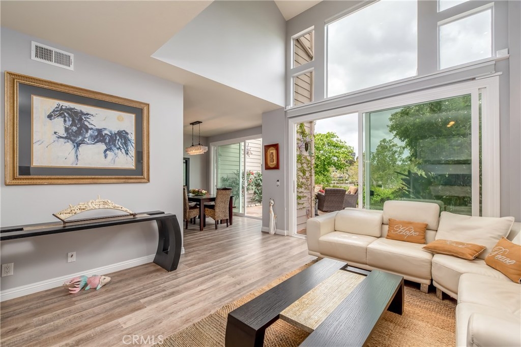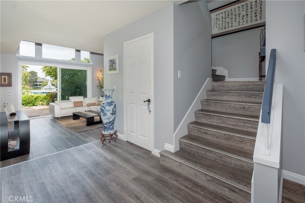 STAY AT HOME & WORK ON THE LAKE! This nearly 2,000 square feet cul-de-sac home is in a small gated community with arguably the most gorgeous turquoise color lake view anywhere in Woodbridge. These Premium View lakefront units seldom list for sale. See wildlife, stunning sunsets, and stroll the lake daily. A community unlike any other, these homes were developed last on the lake and most admired. Perched above the lake trail for more privacy, yet exclusive access is steps away (3 houses down). Across from the shopping center anchored by Ruby's, Grocery Outlet, & movie theater. The exclusivity, convenience, and vacation feel offered by this home are what make it so special. $100k in upgrades including new dual pane windows & sliders, modern kitchen with new appliances, whole-house water filtration system, flooring changed to wood. Master has a walk-in closet and a gorgeous view balcony. HOA covers fire and earthquake insurance, termite, roof, structure, and grounds. Save on insurance/gardener, save with NO MELLO ROOS. Enjoy 41 HOA amenities (WVA.org) Walk to banks, HOAG/Kaiser, Urgent Care. Convenient to UCI, COSTCO, 99 Ranch, Target, restaurants. Irvine Ranked #1 Safest City in America. Prestigious 10/10 Irvine Schools, award-winning Eastshore Elementary walking distance, and also easy to rent out if you want to own a rare piece of Irvine Real Estate for your own enjoyment in the future, this is A MUST SEE, Don’t miss this chance!