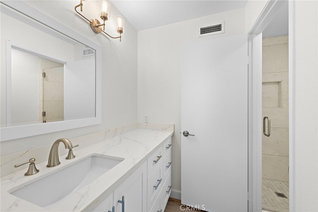 Completely REMODELED home in the highly desirable WOODBRIDGE Community –It Doesn’t Get Any Better Than This! Upper-level home with private balcony allows for stunning “parklike” views. Stroll into an open concept sun-soaked home perfect for gathering with friends and family. The large living room opens to a dining room area and kitchen allowing for the perfect entertainment or relaxation space for all events. This gem includes New Upgraded LVT flooring, New baseboards, New designer paint throughout and a New HVAC. This two-bedroom treasure is Move-In-Ready. The Kitchen is a Chef’s delight….New custom shaker cabinets with upgraded hardware, New stainless-steel appliances, New sink & faucet, New garbage disposal and New can lights. Two larger bedrooms and two spacious bathrooms are the perfect layout for this dream retreat! Spare bathroom completely remodeled with New tub, New designer tile, New vanity, New mirror/toilet. Interior laundry closet with extra storage. Master suite offers plenty of space for all your bedroom needs and even opens to a lovely sliding glass door with a private balcony including additional outside storage. Further enhancing your private oasis is the master’s fully remodeled bathroom with New shower w/designer tile, New large vanity, mirror, and toilet. All Bedrooms include New mirrored closet doors and all new screens throughout. Convenient covered car part footsteps from your door for easy access. Additional storage at the foot of your entryway perfect for odds and ends. If you ever leave your new paradise, you are close to so many convenient amenities. The amenities include 2 landmark lakes with docks, 2 beach lagoons, 22 pools, 16 spas, 13 waders, 23 tennis courts, 4 pickleball courts, a splash pad, numerous parks with play equipment, volleyball courts, a big wheel park, horseshoe and shuffleboard facilities, an outdoor fitness course, basketball, volleyball, bocce ball and much, much more. Close to John Wayne Airport, IR Spectrum, UCI, freeways and minutes away from local beaches. Ready, Set, Enjoy!