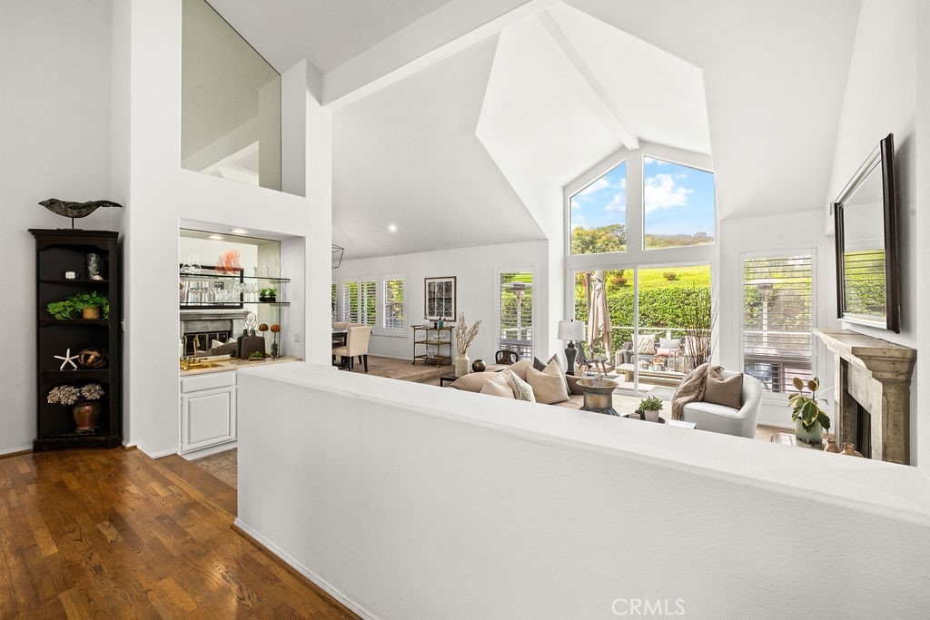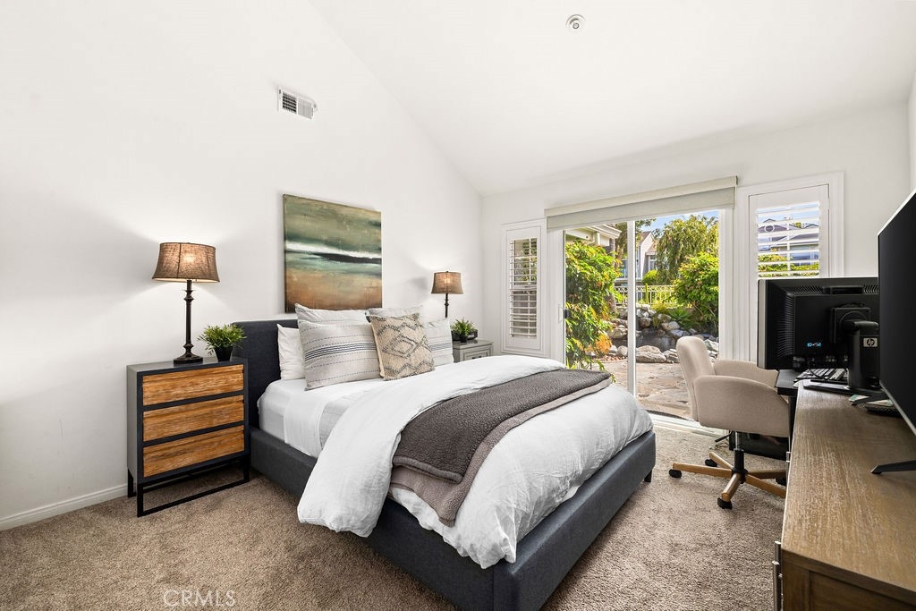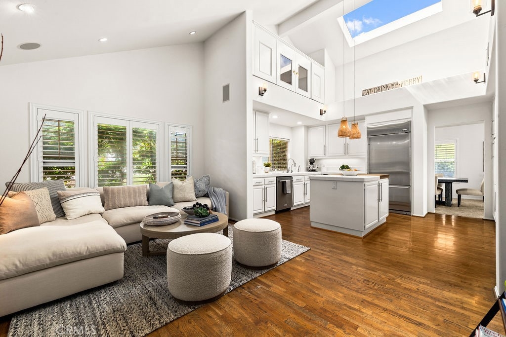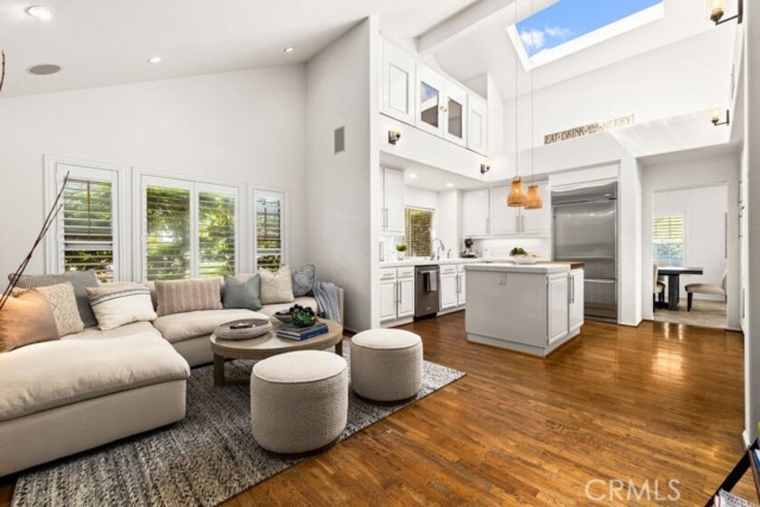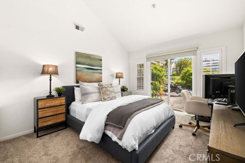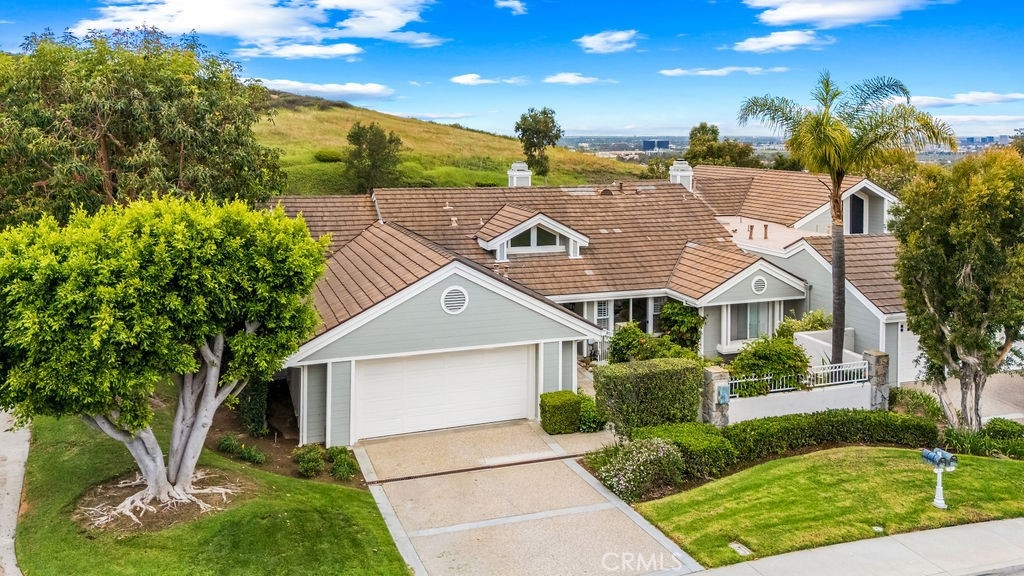 Looking for single-level living at the top of Turtle Rock? Here’s your opportunity to own this popular Belvedere model in the Crest Akins, an executive condo situated on a premium corner location. This architectural gem boasts soaring ceilings, rooms that are all generous in size, and privacy that is hard to find. Recent upgrades include shutters throughout, a redesigned and remodeled powder room as well as a remodeled compartmented hall bathroom. A welcoming gated front patio area greets you with relaxing sounds from the custom waterfall which is surrounded by lush, tropical landscaping, and is beautiful day or night. Step inside and marvel at the high ceilings and streaming natural light. The layout offers an abundance of wall space to display a personal art collection with bright interior spaces complimenting each room. Spanning over 2,600 square feet of living space, the large scale design is an entertainers dream.The formal living room includes a raised hearth fireplace, custom display shelves and cabinets, a convenient wet bar and access to the private rear deck. The separate dining room showcases a custom chandelier and plenty of space for a large dining table and hutch to store your table wear. The adjoining kitchen unveils plenty of storage and lots of remodeling configuration options, a center island with a butcher block top and a large skylight streaming in natural light. Watch the morning news and enjoy a cup of coffee in the family room adjoining the kitchen. The oversized primary suite includes custom added storage cabinetry, double and triple wide closets, soaring ceilings and a primary bathroom with dual vanities, separate tub and shower and a fabulous skylight - a bathroom of this size is a rare find! Two additional bedrooms, one with access to the front courtyard, a bathroom with a large shower and dual vanities, a powder room and laundry room complete the floor plan. This fabulous location features being steps away from one of two association pools, hot tub and clubhouse, and meandering hiking and biking trails. Enjoy living in this secluded hilltop area and the coveted Turtle Rock lifestyle - close to world class beaches, shopping centers, golf courses, John Wayne airport, multiple freeways and more. No Mello Roos. Award winning schools. It’s a perfect place to call home.