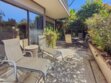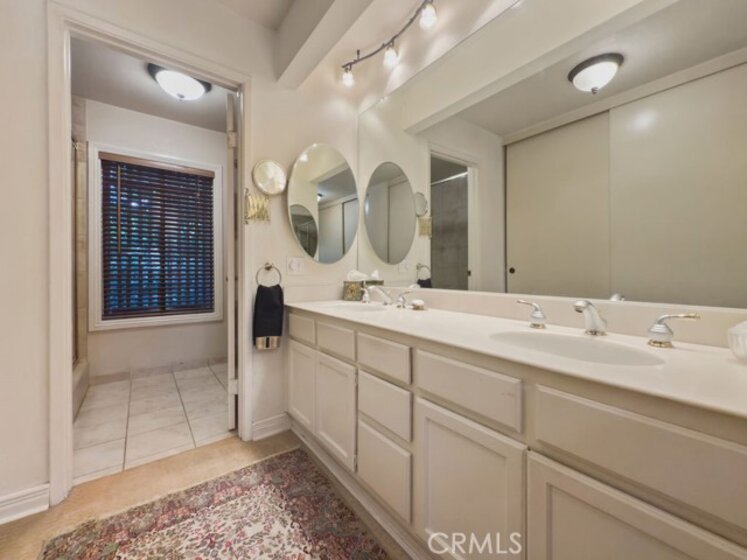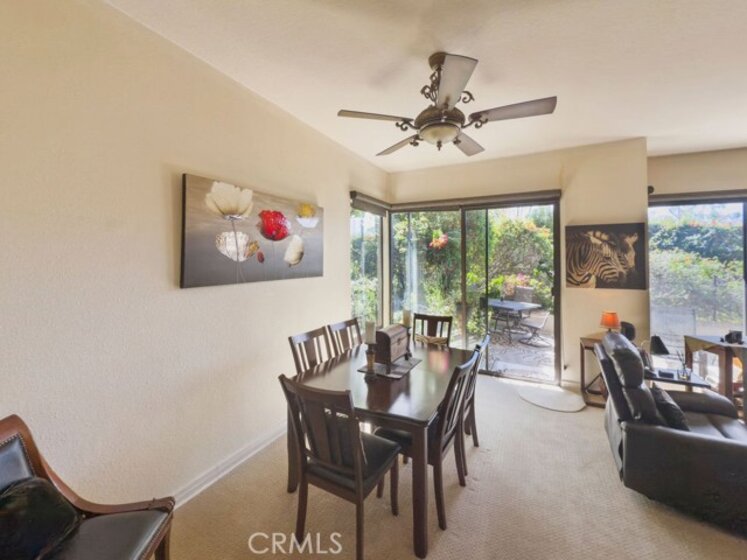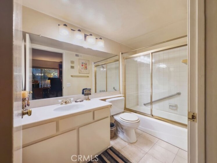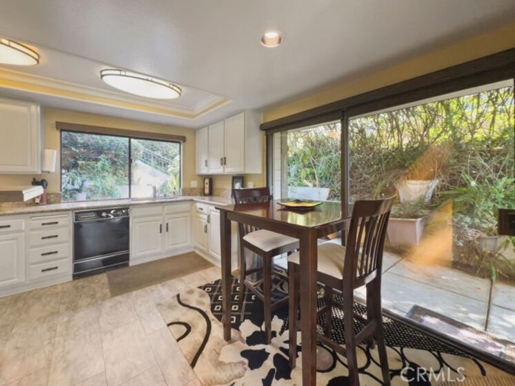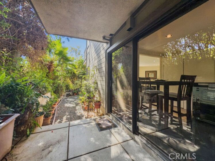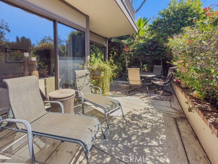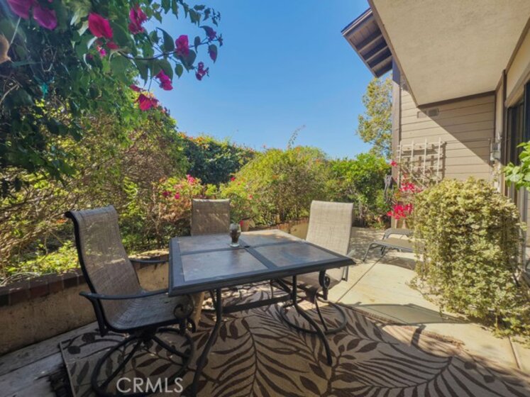 Incredibly private garden home in the Rancho San Joaquin neighborhood of Irvine. This 2 bd, 2 ba downstairs unit is surrounded by two patios with a wrap-around pathway. The large garden is abundant with plants and very private. There are both areas of bright sunshine and deep shade. Inside, large living room windows face south and let in wonderful light. The two bedrooms each have ensuite bathrooms. The main bedroom is large, with abundant closets, dressing area and the bathroom has an attractive tiled step-in shower. The secondary bedroom has a built-in desk with a murphy bed and the bath has a tub. The garage for this home is the very closest garage. Sold in "as is" condition. RSJ neighborhood is known for its beautiful mature sycamore trees and wildlife.