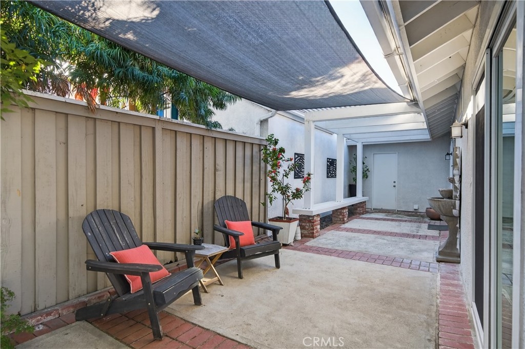 Don’t miss this opportunity to own a beautiful, highly desirable single-story 2-bedroom, 2-bath townhouse in the sought-after Woodbridge community, located on a corner lot across from the community pool and Woodbridge Community Gardens! This home is attached only at the garage wall, ensuring no common walls of living space for added privacy. From the moment you step through the front door, you are welcomed by high ceilings, abundant natural light, and an open floor plan that enhances the living experience. The spacious living room features soaring cathedral ceilings and a cozy fireplace, serving as the heart of the home. The BRAND NEW kitchen boasts an efficient layout with an 11ft raised ceiling, induction stove, and sleek Quartz countertops, perfect for both cooking and entertaining. The master bedroom offers a vaulted ceiling and a walk-in closet, with sliding doors leading to a private patio. Recent upgrades include solid-surface flooring, all-new double-paned windows, recessed LED lighting, and stunning new bathrooms designed for modern comfort. Enjoy a unique wrap-around yard with a grassy area ideal for kids, pets, a vegetable garden, or gathering with friends. This incredible property is located in a community offering resort-style amenities, including lakes, pools, spas, tennis courts, and parks, all within Irvine top-rated school district. Seasons community has won Woodbridge award for HOA maintenance efforts, and all with low HOA dues and no Mello-Roos! This home combines luxury and practicality, making it the perfect opportunity you’ve been waiting for—schedule your showing today!