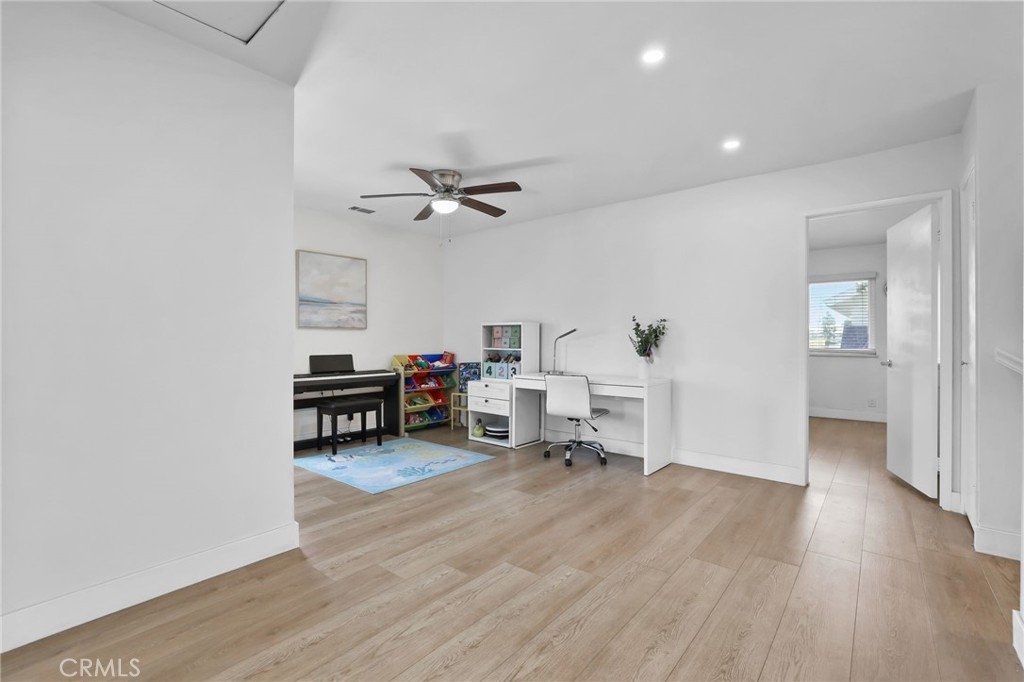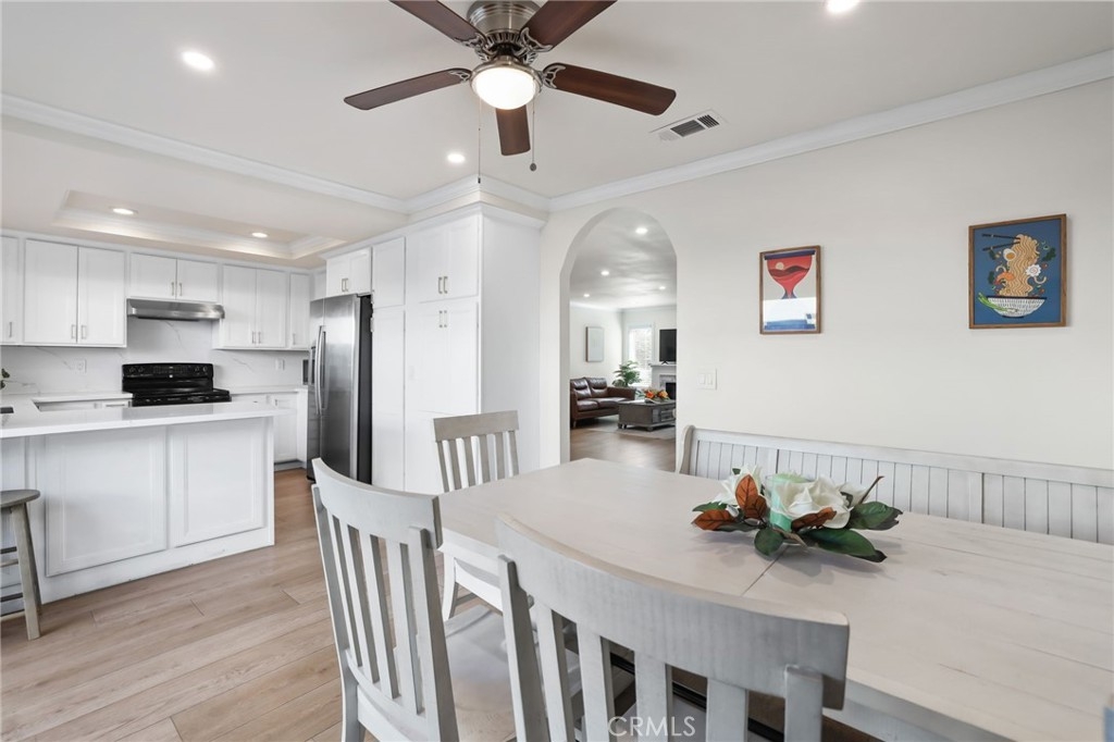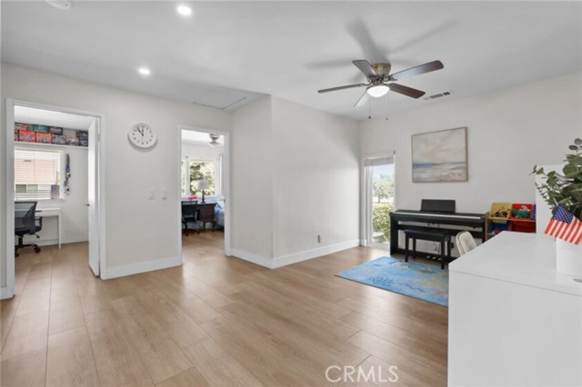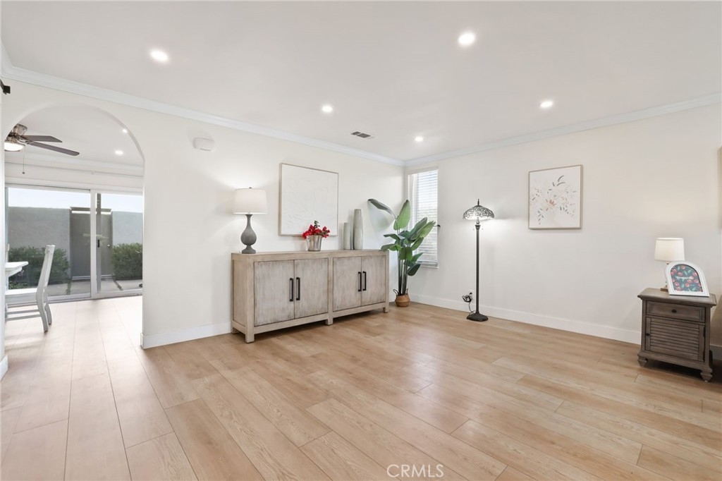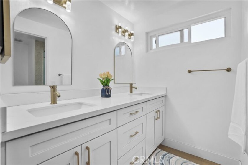 Located in the heart of Irvine, this well-appointed end-unit townhouse in the Deerfield community offers modern comfort and thoughtful design in a beautifully maintained area featuring well-kept grassy area, vibrant blooming bushes and mature trees. Completely remodeled less than two years ago, this three-bedroom, two-and-a-half-bathroom home with spacious loft is move-in ready and features quality finishes throughout. Enter through the front door to find abundant natural light streaming through large dual-pane windows, complemented by 30 recessed lights throughout the home. Luxury vinyl flooring and designer paint colors create a cohesive, polished look in every room. The main floor features an open living and dining room combination, anchored by a built-in electric fireplace that serves as a natural gathering spot. The generous dining area accommodates a large table, ideal for family meals and entertaining. The fully remodeled kitchen showcases white cabinetry, quartz countertops, full backsplash, and stainless-steel appliances, including a refrigerator, dishwasher, a oversized sink and updated range hood. A electric range with double oven completed this kitchen. A breakfast bar connects to the bright family room, which offers flexibility as a home office, playroom, or additional living space. Large sliding doors open to a private patio, while a convenient half bathroom and storage closet are located behind a barn door. Upstairs, three bedrooms and a spacious loft provide ample living space. The primary suite includes an electric fireplace, wall-to-wall closet system with updated sliding doors, and an oversized window. The remodeled primary bathroom features quartz countertops and dual vanities. Two additional well-sized bedrooms and an updated hallway bathroom complete the second floor. A detached two-car garage with new door and motor is conveniently located behind the private patio. The Deerfield Community Association maintains the home exteriors and landscaped grounds. Residents enjoy access to multiple pools, spas, tennis courts, racquetball court, sport court, clubhouse, and outdoor cooking area. The location offers convenient access to neighborhood elementary and middle schools within walking distance, as well as the nearby Culver Shopping Center with its variety of dining and shopping options. The home provides easy access to UC Irvine, the I-405 and I-5 freeways, Irvine Spectrum, South Coast Plaza, and Southern California beaches.