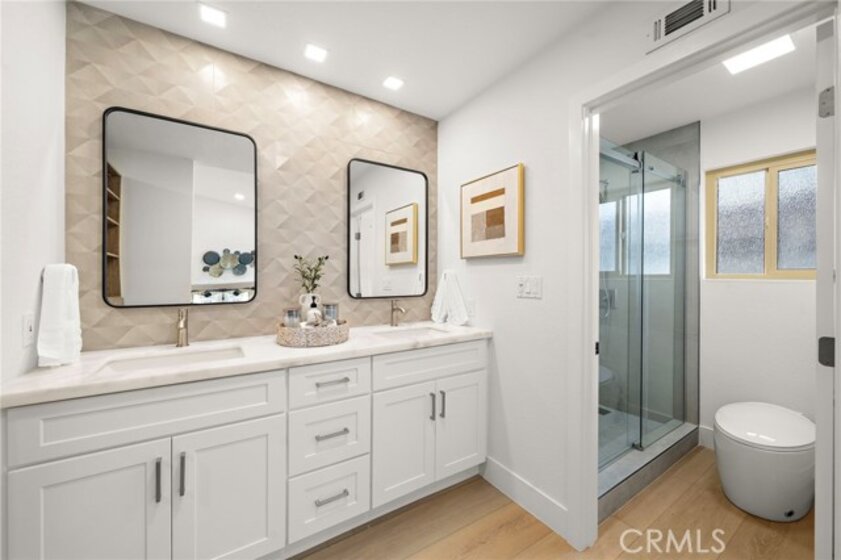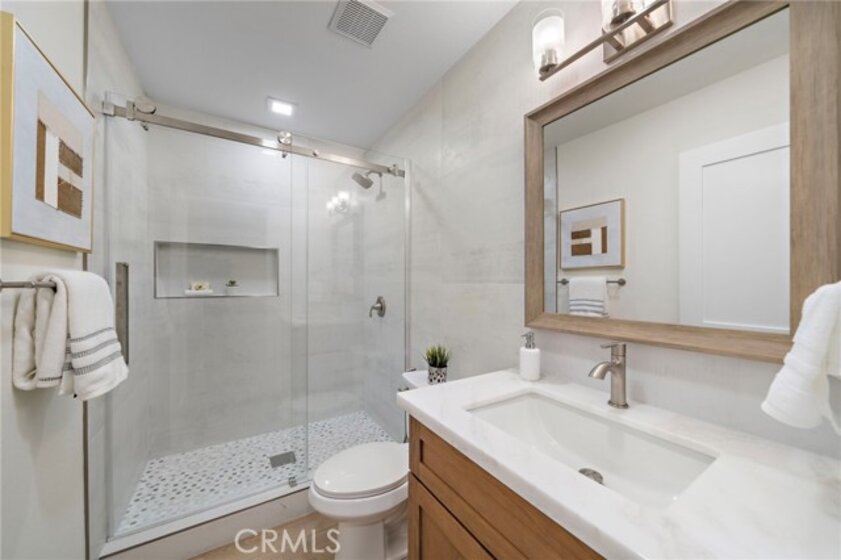 This popular Carmel floor plan is located in the desirable Turtle Rock Meadows community. The beautifully remodeled 3-bedroom, 2.5-bath offers an ideal balance of comfort, style, and functionality—all within one of Irvine’s most cherished neighborhoods. Step into the light-filled living room with its soaring ceilings, cozy fireplace, and direct access to a private front yard—perfect for blending indoor and outdoor living. The newly remodeled kitchen is a chef’s delight, featuring marble countertops, sleek cabinetry, premium stainless steel appliances (including refrigerator, wine cooler, and cappuccino maker), plus a center island with bar seating. A sliding glass door leads to a private deck, ideal for morning coffee or casual dining outdoors. The main level also includes a dining area and a convenient powder room. Upstairs, the spacious primary suite showcases vaulted ceilings featuring custom closet organizers, dual vanities with marble counters. Two additional bedrooms feature custom built-in closet organizers for maximum storage. An attached direct access two-car garage with cabinetry and laundry hookups adds everyday practicality. Newer dual-pained windows, a newer HVAC system, and newer water heater—ensure comfort and efficiency. Community amenities include two resort-style pools, expansive greenbelts, and easy access to Turtle Rock Community Park. Ideally located just minutes from world-class shopping, award-winning schools, beaches, golf, hiking, and dining—with no Mello Roos—this home offers an exceptional opportunity to experience the very best of Irvine living.