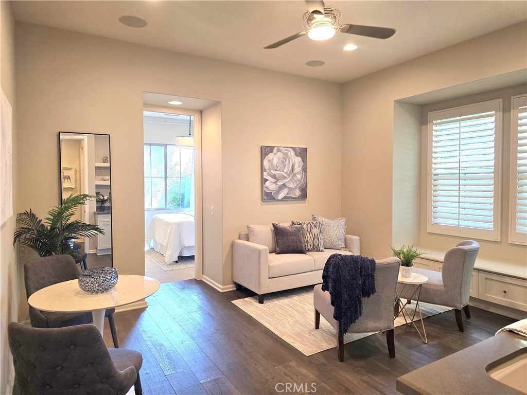 Discover the award-winning, fully upgraded model home at the heart of Beacon Park in Great Park. This contemporary residence spans nearly 3,000 sq. ft. features 4 bedrooms and 4½ bathrooms within an open-concept layout. Step into the expansive living room perfect for movie nights or entertaining with built-in ceiling Bluetooth surround sound. The gourmet kitchen showcases an oversized island, extensive counter space, custom cabinetry, a large pantry, and stainless-steel appliances to satisfy every culinary ambition. Rich hardwood flooring flows throughout the downstairs, leading you to a cozy backyard oasis complete with a BBQ bar and patio seating. For added flexibility, a private downstairs suite offers its own living area, full bathroom, and separate entrance ideal for guests or a home office. Upstairs, the luxurious master suite invites you to unwind with a generous walk-in closet, while a spacious laundry room enhances daily convenience and overall home value. Sunlight pours in through abundant windows, illuminating the home and framing picturesque neighborhood views. Level 2 EV Plug Ready! Don’t miss your chance to call this dream home in Irvine’s Great Park your own!