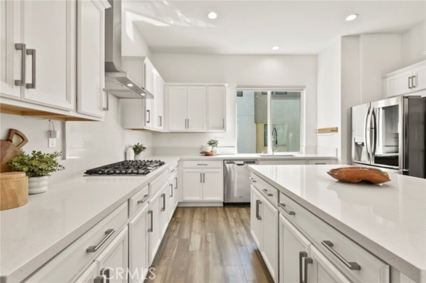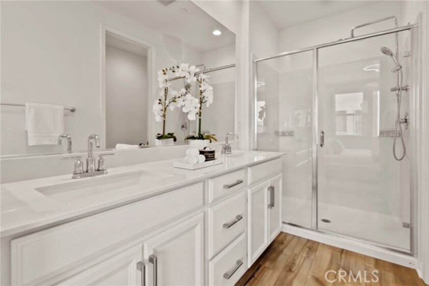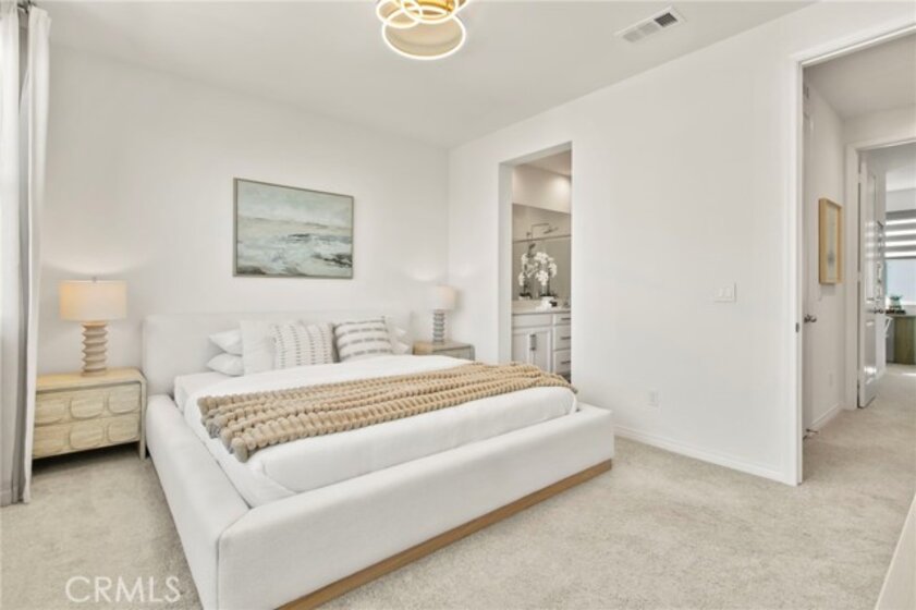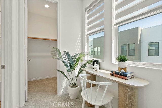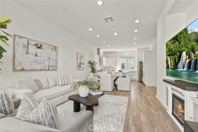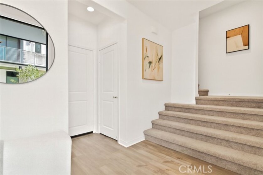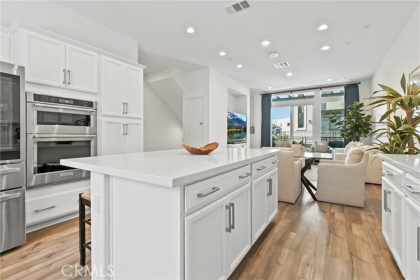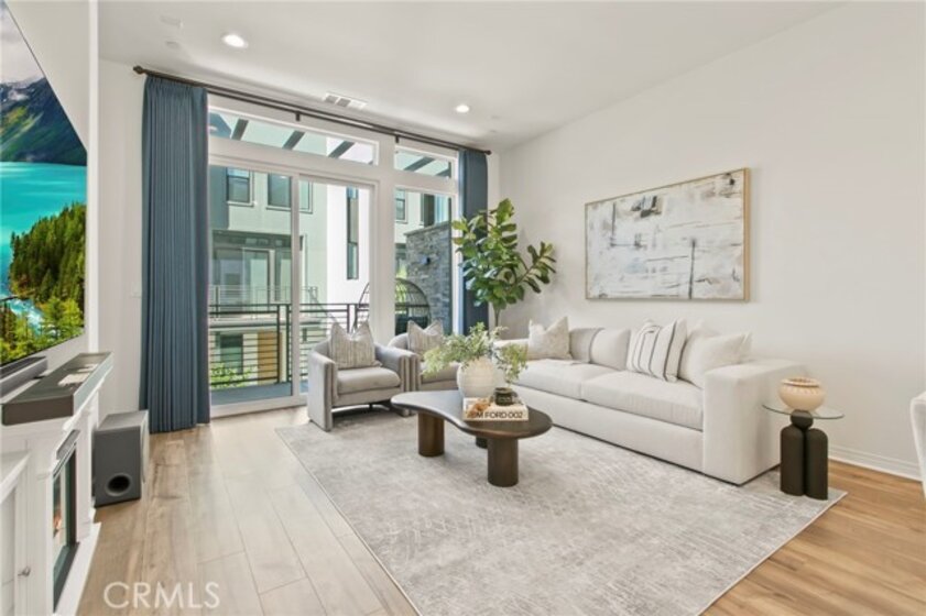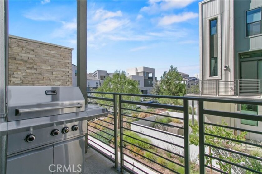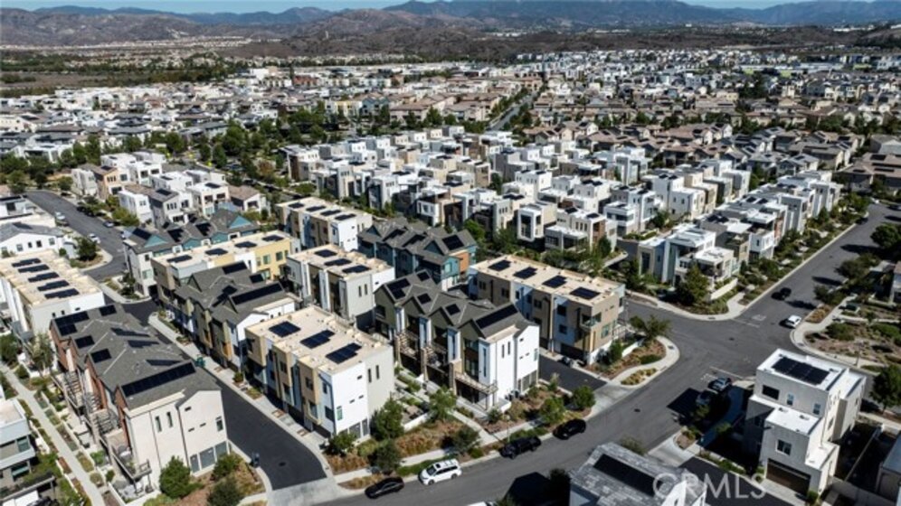 Discover modern living in the highly coveted Irvine Great Park Neighborhood with this bright and spacious 2-bedroom, 2.5-bath home built in 2022. With 1,576 sq ft of open-concept space across three thoughtful levels, this residence offers both style and practicality. Step inside to gleaming luxury vinyl flooring in all communal areas, carpeting in the bedrooms, high ceilings and recessed lighting that frame a clean, luminous environment. The main living level flows seamlessly into the upgraded kitchen featuring premium KitchenAid wall-mount ovens and smart-appliance convenience. Both bedrooms feature their own ensuite baths and walk-in closets, an ideal setup for comfort and privacy. Smart-home lovers will appreciate the fully integrated system: smart dimmer switches throughout, a premium Eufy fingerprint door lock, and a MyQ smart garage opener, all designed for easy, modern living. Outside, the home is equally impressive. A paid-off solar panel system keeps utility costs low. The two-car direct-access garage includes epoxy flooring, LED accent lighting, overhead SafeRacks storage, and a dedicated Emporia car-charging system. Inside, amenities extend, the tankless water heater with hot-water circulation pump and sensor valve ensures instant comfort without waste. The front yard is professionally landscaped creating a beautiful courtyard that invites quiet conversation or outdoor gatherings. A balcony off the upper level is perfect for relaxing at sunset or hosting a casual barbecue. Located just steps from the popular Wild?Rivers?Water?Park and within the top-rated Irvine Unified School District, this home places you where lifestyle and convenience meet. With access to over 20 pools/spas and nine parks in the Great Park community, you’ll enjoy resort-style amenities every day. Welcome home.