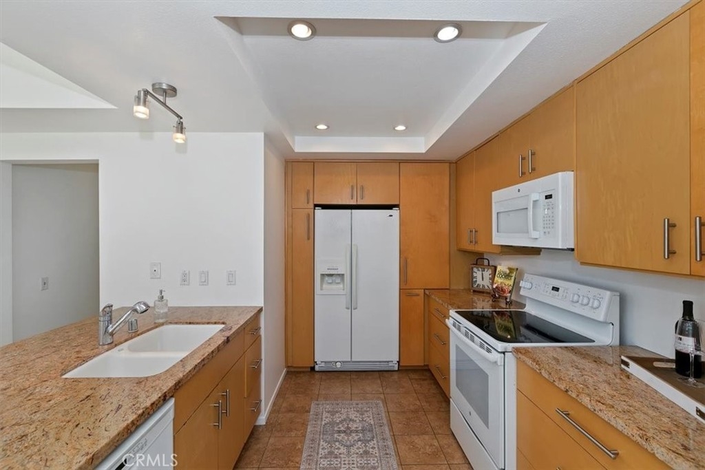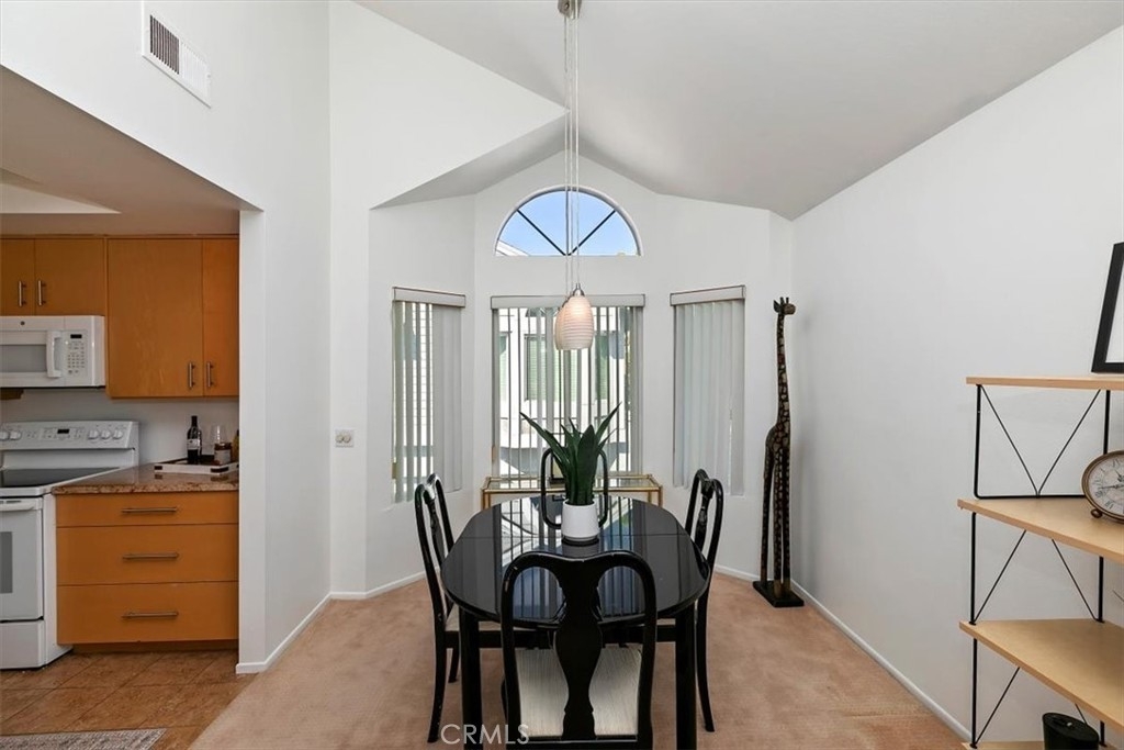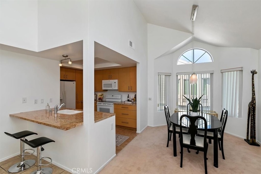 Welcome to 103 Remington, an upper-level end unit condo, located in the Horizon community of Northwood. The open floor plan has vaulted ceilings that create a spacious atmosphere, perfect for entertaining. The home has been freshly painted throughout, making it feel light and airy. The remodeled kitchen features updated cabinets, stone counters, a spice rack, and two rotating turntables. There is a formal dining area as well as a breakfast bar available for casual dining. Stackable washer and dryer included! The primary suite is large with space for a sitting area and boasts a walk-in closet. The primary bathroom offers a walk-in shower. The secondary bedroom can be used as a home office or exercise room. A detached 1 car shared garage is located directly below the unit. There is also a separate private storage space available. The balcony provides an area where you can enjoy outdoor dining or soak in the sun. Two gated sparkling pools and spas, one close by, are available for sunny day enjoyment and one is heated throughout the year for winter swimming too. Location is key as there are nearby parks, restaurants, shopping, and top rated schools. This is a great property to gain home ownership!