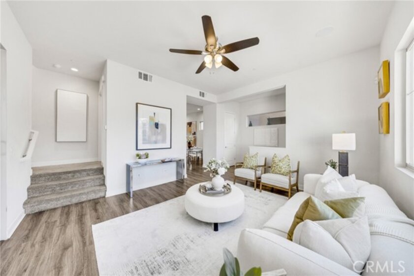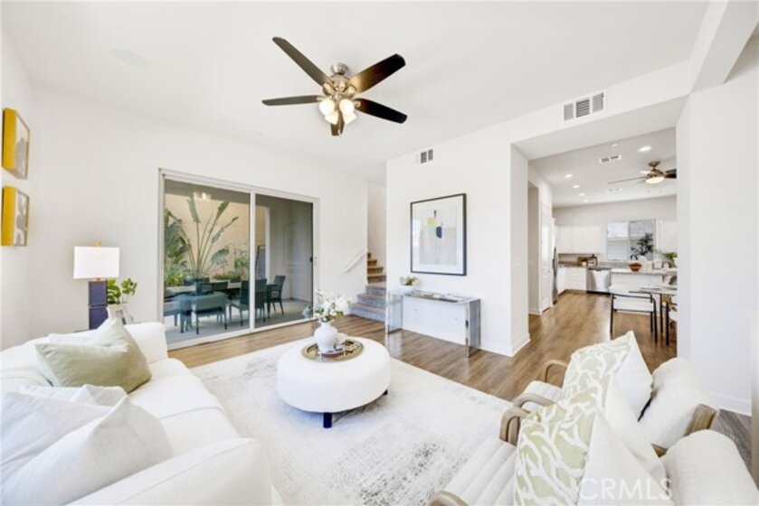 Rare Detached Two-Story Home with Single HOA and Prime Location Discover the perfect balance of privacy and convenience in this rare, two-story detached condo featuring only a single HOA and an unbeatable location with no neighbors directly across—only a peaceful, lush greenbelt. The home is designed for effortless living, highlighted by a spacious main-level living room that captures abundant natural light and opens seamlessly to a beautifully landscaped, green backyard—offering a generous outdoor space rarely found in condo living. The interior layout is highly functional, featuring an independent kitchen space that connects comfortably to a dedicated dining area, creating a practical flow for daily meals. Upstairs, the expansive primary suite serves as a bright and airy retreat, while two additional guest bedrooms—each uniquely featuring its own walk-in closet—share a well-appointed full bath. Located in the heart of the community, you are just a 5-minute stroll from the future Great Park retail center and within easy walking distance to three local parks. This home is served by the award-winning Cadence Park (K-8) and Portola High School, with the I-5 freeway just a 5-minute drive away. A well-maintained, standalone residence in a world-class neighborhood.