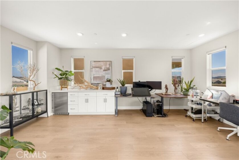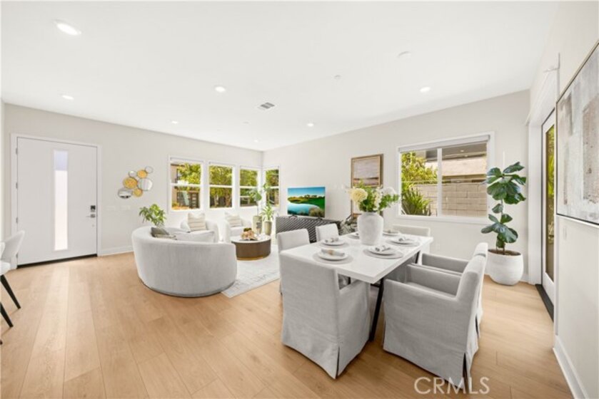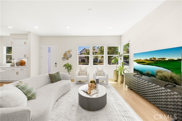 SELLER IS HIGHLY MOTIVATED — PRICED TO SELL! Built in 2021 by Lennar, this stunning detached condominium is located in the highly desirable Rise Park within the Great Park Neighborhoods. Offering 3 bedrooms, 2.5 bathrooms, a third-floor bonus loft, and approximately 2,594 sq. ft. of elegant living space, this residence blends modern luxury with everyday functionality. The open-concept first floor showcases a chef-inspired gourmet kitchen with quartz countertops, white shaker cabinetry with soft-close drawers, a walk-in pantry, and a large center island perfect for entertaining. The spacious great room and dining area flow seamlessly together, with direct access to the attached 2-car garage. Natural light fills the interiors, creating a bright and welcoming atmosphere. The backyard has been thoughtfully designed with freshly painted walls, built-in planters, and beautifully cultivated succulents. A balance of modern hardscape and lush greenery creates a warm, cozy setting—ideal for meditation, relaxation, or enjoying quiet outdoor moments. Upstairs, the expansive master suite offers a peaceful retreat with room for a sitting or entertainment area. All bedrooms are located on the second floor, along with a full laundry room equipped with cabinetry for added convenience. The entire third floor is dedicated to a versatile loft with sliding glass doors leading to a private covered deck. Bathed in natural light, this space is perfect as a lounge, game room, or creative retreat. From here, enjoy breathtaking sunsets and sweeping city views, crafting the ultimate setting for relaxation or entertaining. Zoned to award-winning Irvine schools including Portola High School and Cadence Park K-8, and just minutes from Woodbury Shopping Center, Irvine Spectrum, John Wayne Airport, Kaiser Permanente, and major freeways (I-5, 241, 133, 73), this spectacular home delivers comfort, style, and convenience in one of Irvine’s most sought-after communities.