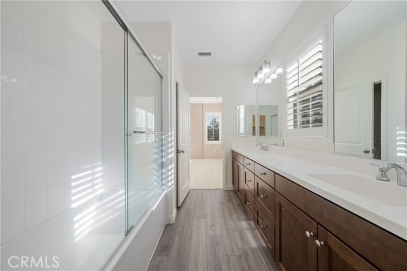 Most Popular floorplan Residence 2 at Jasmine in Irvine’s popular Cypress Village, this bright and airy north east facing end unit home hosts a wide array of new upgrades just did in this month. Wood-look luxury vinyl plank flooring graces the main floor and 2.5 baths, while brand-new designer carpet enhances 3 second-level bedrooms and stairs. the stylish accent TV wall in a cheery great room and Open dining area with backyard access, an island kitchen with upgraded stainless steel KitchenAid appliances, a pantry and granite countertops. Upstairs, a classic tray ceiling distinguishes the luxurious master suite with new upgrade accent wall as well, master room is also appointed with 2 sinks and a spacious walk-in closet. For added convenience, an interior laundry room is located on the upper floor and an attached garage accommodates 2 cars. From its sought-after corner homesite, the residence is walking distance to Cypress Village’s elementary school, multiple parks, trails, a clubhouse, pool, spa, playground, basketball court and sports fields. Shopping centers, recreation, Irvine Spectrum, and major freeways and toll roads are minutes away.