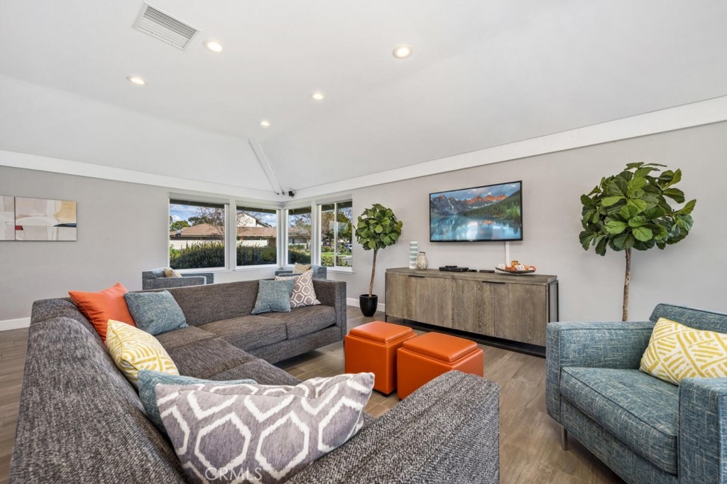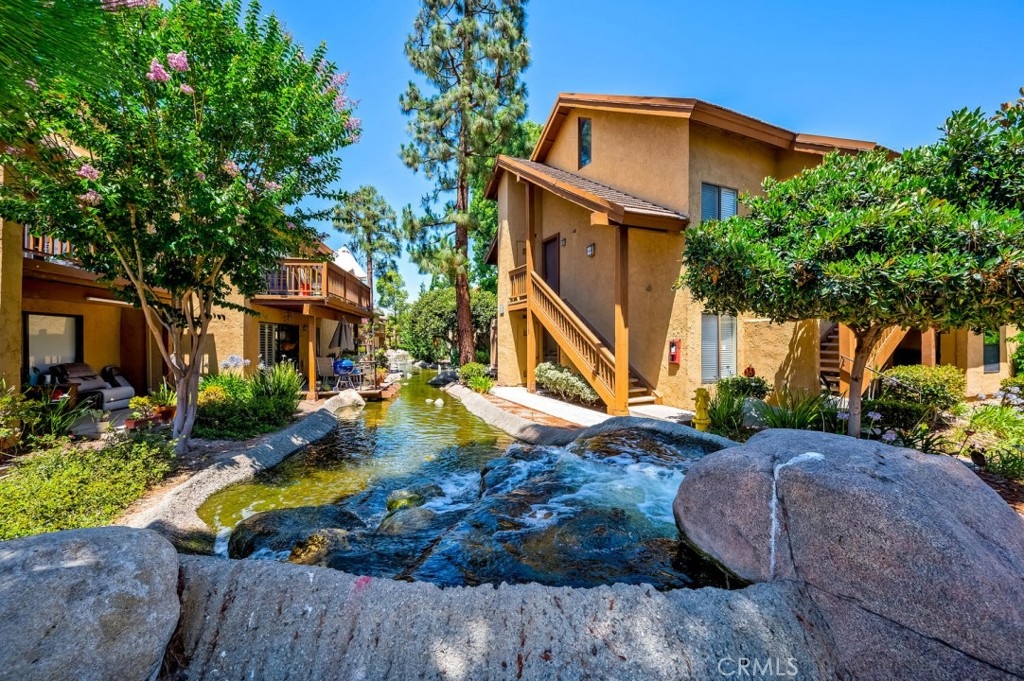 This is a very special unit. Enjoy the small waterfall right outside the front porch. No cars are visible from this location. At times you can smell the ocean breeze. The rear porch overlooks a beautiful well kept steam. The upstairs has an enclosed storage room that is 8 feet by 32 feet! Wonderful waterproof engineered wood flooring! New paint. New countertops. Upgraded cabinets. New bathroom vanity and faucets. Enjoy all the amenities: tennis court, clubhouse, workout room, basketball, tot lot. Plus the Irvine Unified School District, and the Irvine Valley College right next door. Award winning University of California, Irvine is close by. The Great Park is around the corner. Many job opportunities are within close distance. Great hiking trails are close. Best bicycle trails! You can bicycle all the way to the beach on bike trails, while going through Back Bay vast marshland that attracts many birds. Pools used in the Olympics are close by with great swim teams -- Novaquatics. While you have no freeway noise you are close the 5 and 405. Irvine Center Drive cuts nicely across Irvine where the speed limit is 55 mph. The Spectrum is just down the street. When you get home you should feel the park like setting. And know that you are home indeed.