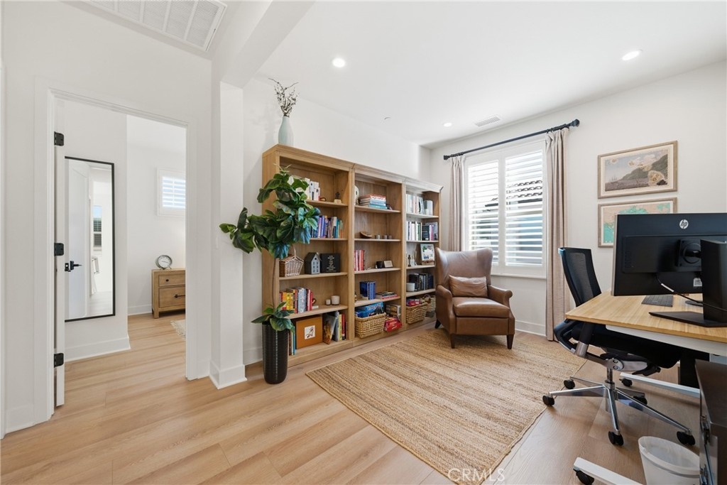 Welcome to 109 Fairgreen, Irvine—where elevated design and effortless California living come together in one of the city’s most peaceful and sought-after neighborhoods. Located within the award-winning Irvine Unified School District and just moments from parks, resort-style pools, and scenic trails, this exceptionally quiet community offers the perfect blend of luxury, comfort, and location. Inside, the home is highlighted by wide-plank laminate flooring, recessed lighting, plantation shutters, custom designer drapery, a custom stair runner that adds warmth and texture, and upgraded fixtures and hardware throughout. The gourmet kitchen is a true centerpiece, showcasing Taj Mahal quartzite countertops that seamlessly extend across the kitchen counters, backsplash, and into the bathrooms, paired with high-end Wolf appliances, a 36-inch Sub-Zero refrigerator, and refined cabinetry for a timeless, designer look. Upstairs, the spa-inspired primary suite features a newly tiled shower, designer-selected tile flooring, and elegant designer wallpaper, creating a serene retreat, while the secondary bathrooms mirror this elevated aesthetic with coordinating tile finishes and designer wallpaper for a cohesive, luxury feel. Expansive panoramic sliding doors invite seamless indoor-outdoor living and open to a private, professionally landscaped backyard with no neighbors to the north and sweeping mountain views overlooking Tomato Springs Park. Additional highlights include a finished garage with epoxy floors, Tesla charger, overhead storage, full interior insulation, a car charger outlet, and paid-off solar panels for energy efficiency. Thoughtfully upgraded and beautifully positioned, 109 Fairgreen is a rare opportunity you won’t want to miss.