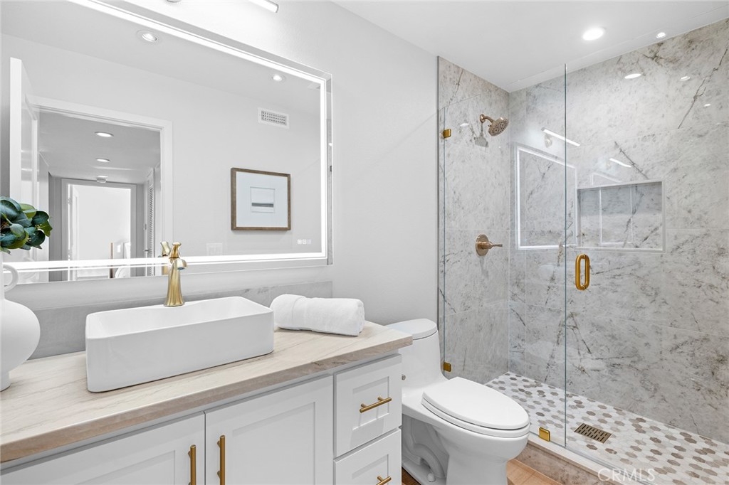 Welcome to the Crown Jewel of Turtle Rock Pointe ideally located on a private cul-de-sac within the exclusive gated community. This stunning, completely remodeled property offers the perfect blend of luxury, privacy, and convenience. Boasting three bedrooms and 3 full bathrooms, this spacious condominium spans across 2,104 square feet of living space featuring an abundance of natural light and an open floor plan with a formal dining area, formal living room, and family room, providing an ideal space for both intimate gatherings and entertaining guests. One of the bedrooms is conveniently located downstairs, providing flexibility and accessibility, while upstairs, you'll find two master suites, each with its own en-suite bathroom. Perched on a private cul-de-sac and nestled amidst rolling hills, this home offers privacy and breathtaking views overlooking Strawberry Farms Golf Course and the Sand Canyon Reservoir, creating a tranquil ambiance. A haven for relaxation, the master bedroom reveals a large en-suite master bath, walk-in closet, and breathtaking views. The two-car garage conveniently provides ample space for parking and is adorned with custom built-in cabinets, overhead storage, and epoxy floors. Perfect for entertaining, the backyard is complete with spacious dining areas and gorgeous views. Turtle Rock Pointe is an exclusive community comprising only 188 homes, ensuring a tight-knit and secure environment. Residents also enjoy association amenities that include 2 separate pools and jacuzzis. Additionally, its prime location offers proximity to esteemed educational institutions such as Concordia, UCI, Uni High, Vista Verde, and Bonita Canyon Elementary. Conveniently located near Strawberry Farms Golf Course, shopping, restaurants, and easy freeway access. Don't miss the opportunity to call this turnkey property your new home."