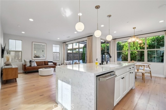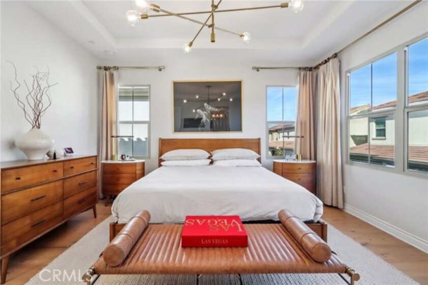 Experience elevated luxury living in this beautifully upgraded 4-bedroom, 3-bathroom detached residence, perfectly situated in the highly desirable Portola Springs community. Thoughtfully designed for modern living, this exceptional home blends elegance, comfort and everyday functionality. Step inside to discover refined hardwood flooring and expansive windows that bathe the interior in natural light, creating a bright ambiance throughout. At the heart of the home is a chef-inspired kitchen, meticulously appointed with quartz countertops, sleek white cabinetry, GE Monogram appliances, professional cooktop, powerful range hood, quartz backsplash and generous waterfall island with bar seating—ideal for meal prep and casual dining. The open-concept layout is designed for seamless indoor-outdoor living. The spacious great room flows effortlessly into the meticulously landscaped backyard, featuring a custom fountain and multiple seating areas perfect for entertaining. A convenient first-floor bedroom and full bathroom provide exceptional flexibility, making it an ideal space for guests or multi-generational living. Upstairs, the primary suite offers a private retreat with a spa-inspired bathroom complete with walk in shower, dual quartz vanities and spacious walk-in closet. Two additional secondary bedrooms share a beautifully appointed bathroom with soaking tub. A versatile loft area offers the perfect space for a home gym, office or media room. The upper-level laundry room includes built-in cabinetry and window for natural light, adding comfort and practicality to your daily routine. Direct access to a two-car garage completes this exceptional home. Residents enjoy LOW HOA fees and MelloRoos while benefiting from world-class amenities, including championship-style tennis courts, 15 sparkling pools, beautifully maintained parks, basketball courts, soccer field, baseball field, clubhouse and picnic areas with BBQs. Ideally located near the scenic Jeffrey Open Space Trail and close to award-winning Irvine schools—Loma Ridge Elementary, Jeffrey Trail Middle School, Portola High School—this home offers unparalleled convenience. Minutes away from Woodbury Town Center, Irvine Spectrum, Great Park, popular dining and freeways, this location has it all. This move-in ready home exemplifies luxury, comfort and premier Irvine living. Don’t miss the opportunity to make this exceptional property yours—schedule a private tour today and discover the best of Portola Springs.