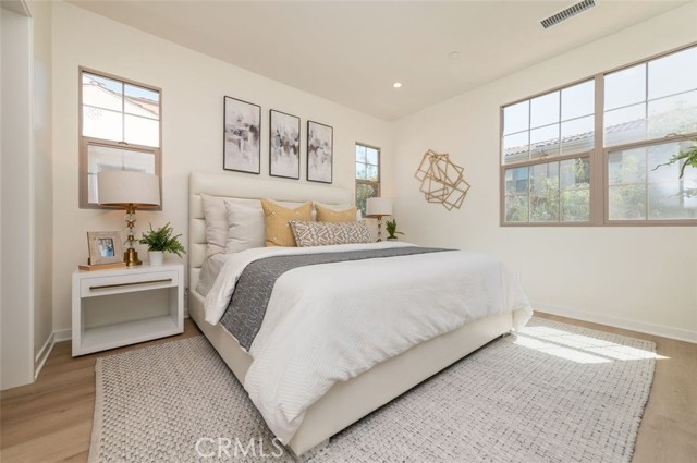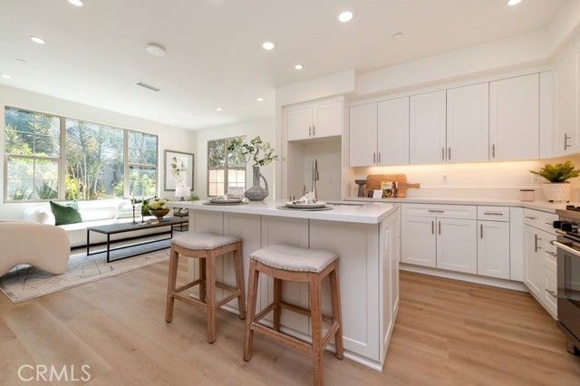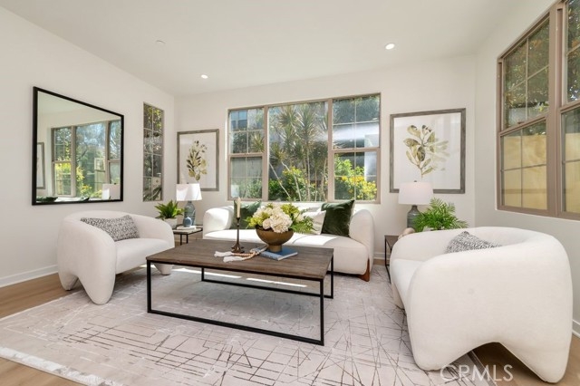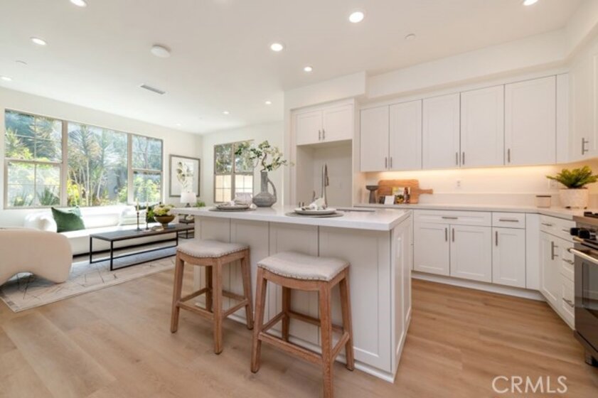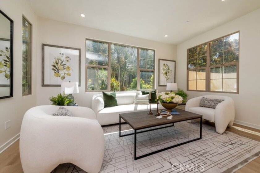 Welcome to this stunning corner-lot townhome in the heart of Portola Springs, offering 4 bedrooms and 3 full bathrooms including a convenient downstairs bedroom and bath. Ideally situated on a premium lot with views of the greenbelt, this home features an open, light-filled floor plan designed for modern living. The gourmet kitchen is equipped with stainless steel appliances, an island with quartz countertops, and ample cabinet space perfect for cooking and entertaining. Recessed LED lighting runs throughout the home, adding warmth and elegance. Upstairs, the luxurious primary suite features a spacious layout, walk-in closet, and ensuite bath. Thoughtful upgrades include enhanced insulation between floors and walls, providing a peaceful and quiet environment. Step outside to a private courtyard, ideal for relaxing and enjoying outdoor meals. Just steps from home, Village Square Park offers family-friendly recreation, with nearby access to Jr. Olympic pools, tennis and basketball courts, sand volleyball, BBQ grills, and playgrounds. Located in the award-winning Irvine Unified School District, this home is served by Portola High School. Enjoy close proximity to the Great Park, Woodbury Shopping Center, Irvine Spectrum, major freeways, and a variety of restaurants and shops. Don't miss this exceptional opportunity to own a beautiful home in one of Irvine's most sought-after communities!