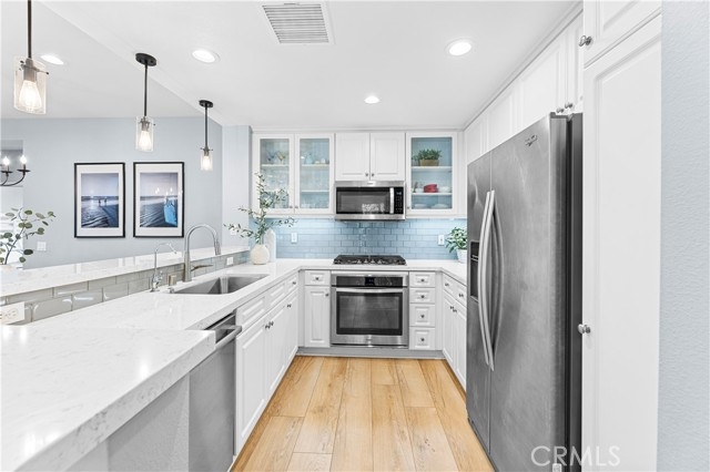 Welcome to this turn key former model home in the desirable Ashton Green neighborhood of Turtle Ridge, Irvine. This Plan 6 corner residence offers abundant natural light and timeless upgrades throughout, including wide plank wood flooring, crown moulding, wainscoting, custom built-ins, and a beautifully renovated kitchen. The open layout features a spacious family and dining room, a tech center with built-in desk, and a private patio off the living room that extends the living space outdoors. You’ll find two generously sized bedrooms with upgraded bathrooms, along with a convenient laundry area. Additional highlights include a full two-car garage, tasteful designer finishes, and versatile spaces that make the home ideal for both everyday living and entertaining. Perfectly situated within walking distance to award-winning Irvine schools, with easy access to nearby parks, University High School, the Toll Roads, and world-class shopping and dining, this home blends comfort, style, and convenience in one of Irvine’s most sought-after communities.