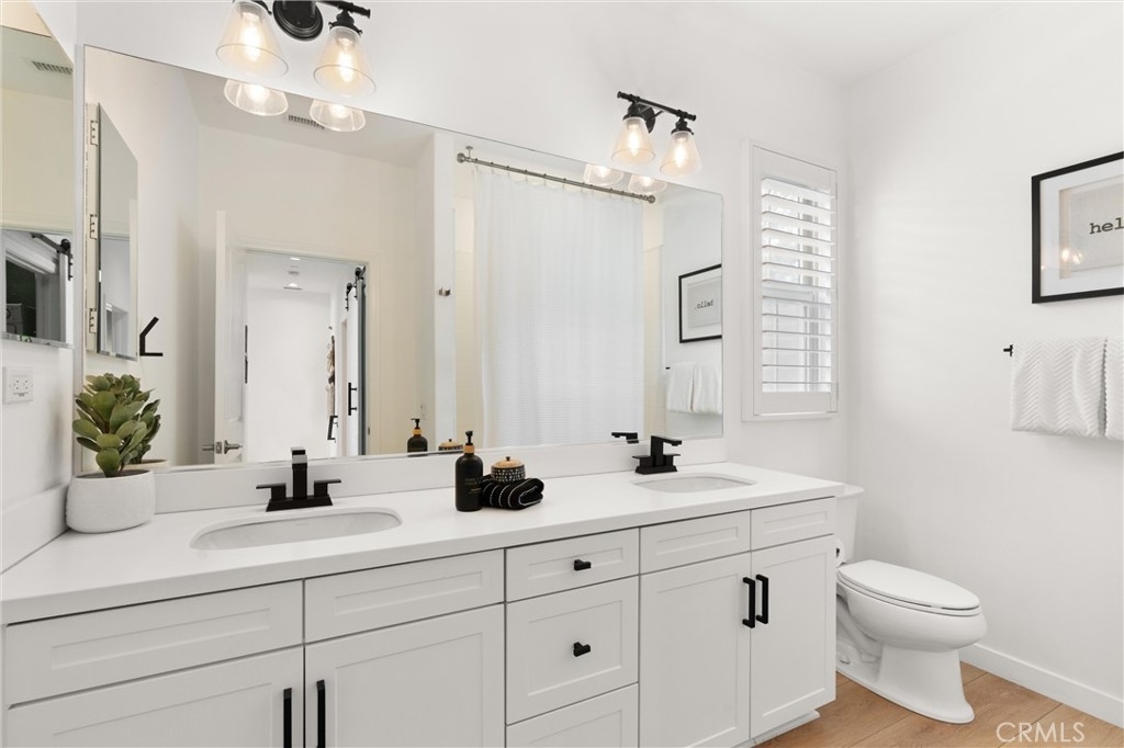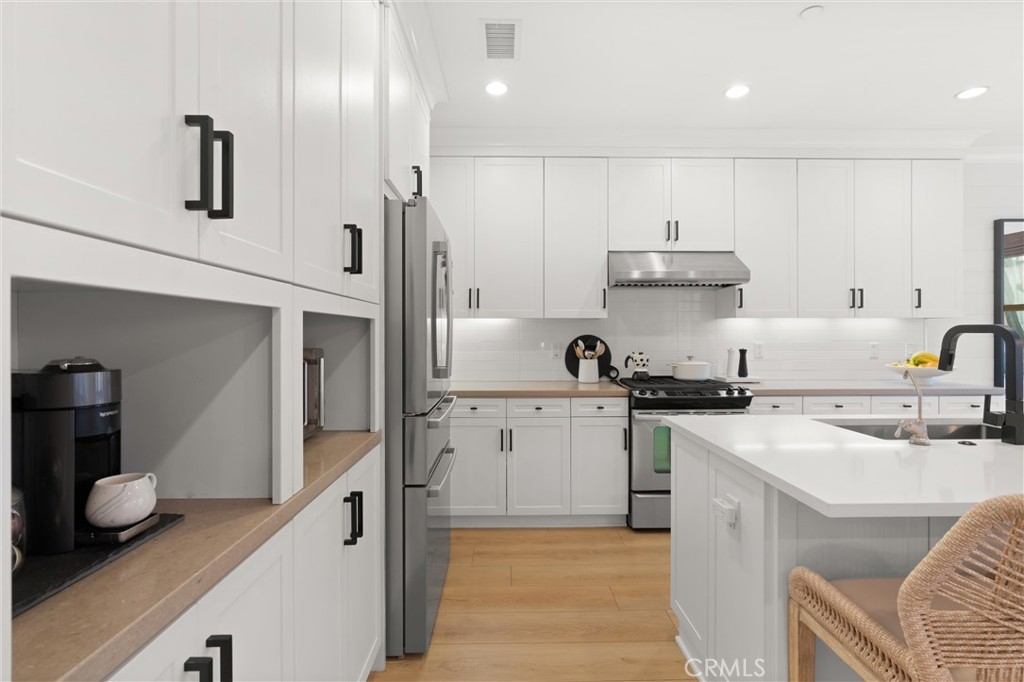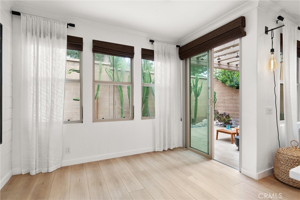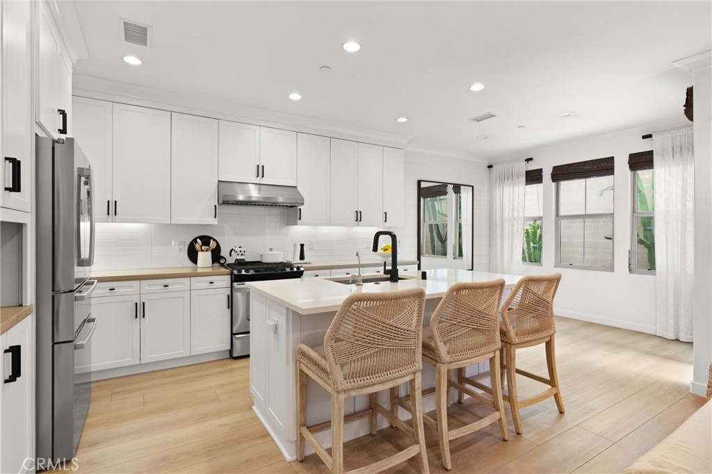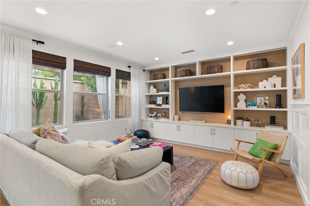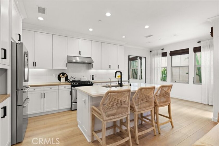 Welcome to 112 Gemstone, located in the highly sought-after Stonegate community. Featuring over $130,000 in custom designer upgrades, this home exudes pride of ownership from the moment you step inside. Elegant touches include custom window coverings, designer light fixtures, upgraded cabinet hardware, and luxurious Phillip Jeffries grasscloth wall coverings. Additional highlights include new Provenza flooring, a quartz kitchen island countertop, pull-out kitchen cabinet drawers, a custom backsplash, custom closets, wainscoting throughout, a bespoke built-in entertainment center, and much more. Every detail reflects superior quality—there’s not a single builder-grade finish in sight, and no expense has been spared. The beautifully tiled backyard patio features sprinklers for the decorative landscaping. The garage is equally impressive, outfitted with custom cabinets, overhead storage, a 240-volt outlet for EV charging, and sleek epoxy flooring. The community offers top-rated Irvine schools and resort-style amenities, including a pool, tennis courts, parks, basketball courts, BBQ areas, and playgrounds. Ideally situated within walking distance to Woodbury Town Center and the Jeffrey Open Space Trail, this stunningly upgraded home truly must be seen in person to be fully appreciated!