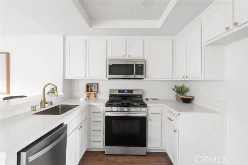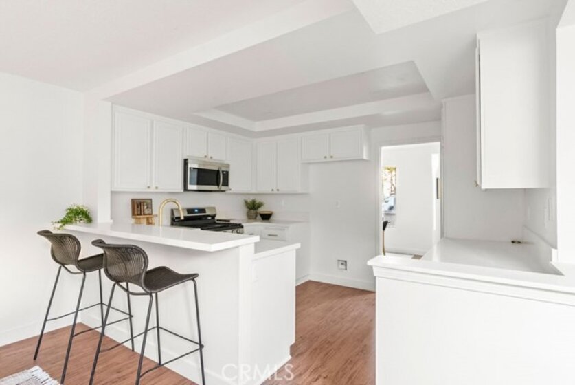 Experience the pinnacle of Southern California living in this stunning condo located in the heart of Irvine, consistently ranked as one of the nation’s most desirable cities. Recently reimagined with a meticulous eye for detail, this residence offers a seamless blend of contemporary luxury and effortless comfort. From the moment you step inside, you are greeted by a dramatic, light-drenched interior defined by soaring two-story vaulted ceilings and expansive windows that invite the outdoors in. The open-concept main level is a masterpiece of modern design, featuring stylish vinyl flooring, fresh neutral paint, and a chef’s dream kitchen boasting sleek quartz countertops and a full suite of brand-new stainless steel appliances. The thoughtful layout provides a rare indoor-outdoor flow with dual private outdoor spaces, including a welcoming front patio and a secluded back retreat perfect for alfresco dining. Upstairs, the home transitions into a quiet sanctuary with brand-new flooring throughout the bedroom retreats. The primary suite features dual closets and a completely refreshed ensuite with new custom shower glass, upgraded vanity mirrors, and designer fixtures. The secondary bedroom offers ultimate convenience with its own fully updated private bathroom, making it an ideal space for guests or a sophisticated home office. Beyond the impeccable interior, this home offers the ultimate in modern convenience and peace of mind. Every detail has been addressed, from the newer central HVAC system and designer lighting to the updated hardware, faucets, and shower valves throughout. Residents also enjoy the security of an attached two-car side-by-side garage and access to world-class community amenities, including a sparkling pool, spa, sports courts, and scenic picnic areas. Perfectly situated within the prestigious Irvine Unified School District and zoned for the award-winning University High School, this "like-new" residence represents a rare opportunity to own a turn-key home in a premier location. Residents also enjoy world-class community amenities, including a sparkling pool and spa, sports courts, BBQs, and scenic picnic areas.