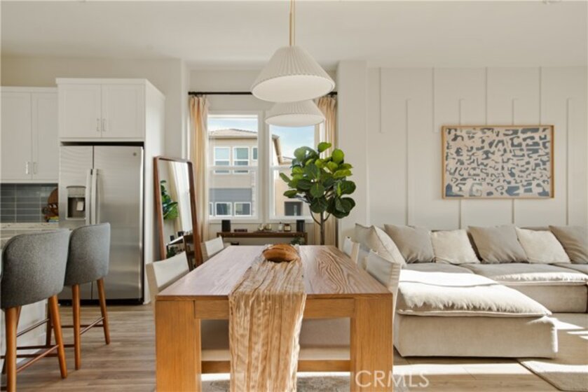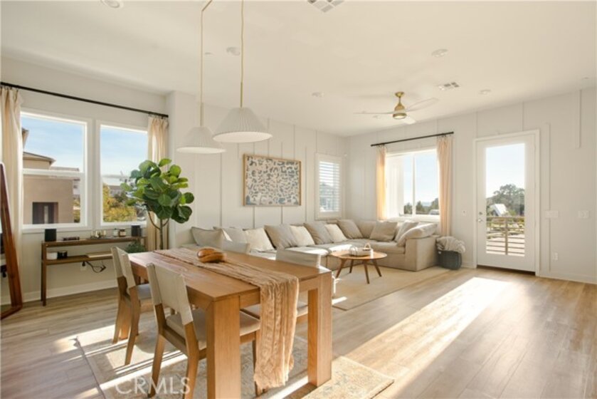Former Model Home with PAID OFF SOLAR, showcasing thousands of dollars in designer-selected upgrades throughout. Perfectly positioned in one of Solis Park's most desirable locations with no front neighbors and unobstructed park and sunset views, this residence offers elevated living in every detail. The interior features custom designer flooring, upgraded cabinetry, premium lighting, sleek window treatments, and a gourmet chef's kitchen with high-end stainless steel appliances and an oversized island ideal for entertaining. The open-concept living space flows seamlessly for everyday comfort and hosting. Upstairs, the primary suite captures peaceful park views and evening light, complete with a spacious walk-in closet and a beautifully upgraded en-suite bathroom with dual vanities and an oversized glass shower. Additional highlights include upstairs laundry, smart home features, and an attached 2-car garage. Residents enjoy access to the brand-new Great Park amenities-resort-style pools, clubhouses, playgrounds, sports courts, and miles of walking and biking trails within the award-winning Irvine Unified School District. Portola High school is walking distance and close by elementary schools. A rare opportunity to own a former model home with PAID OFF solar and extensive upgrades