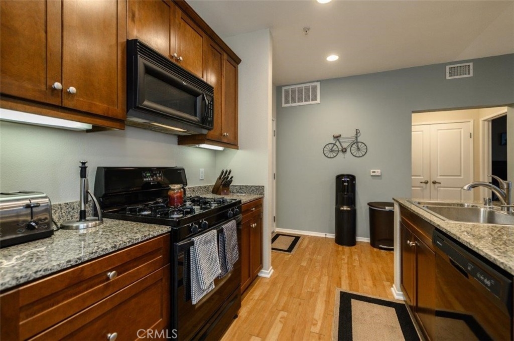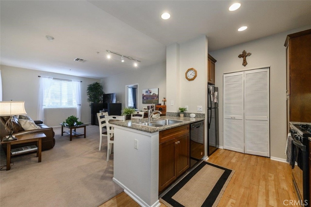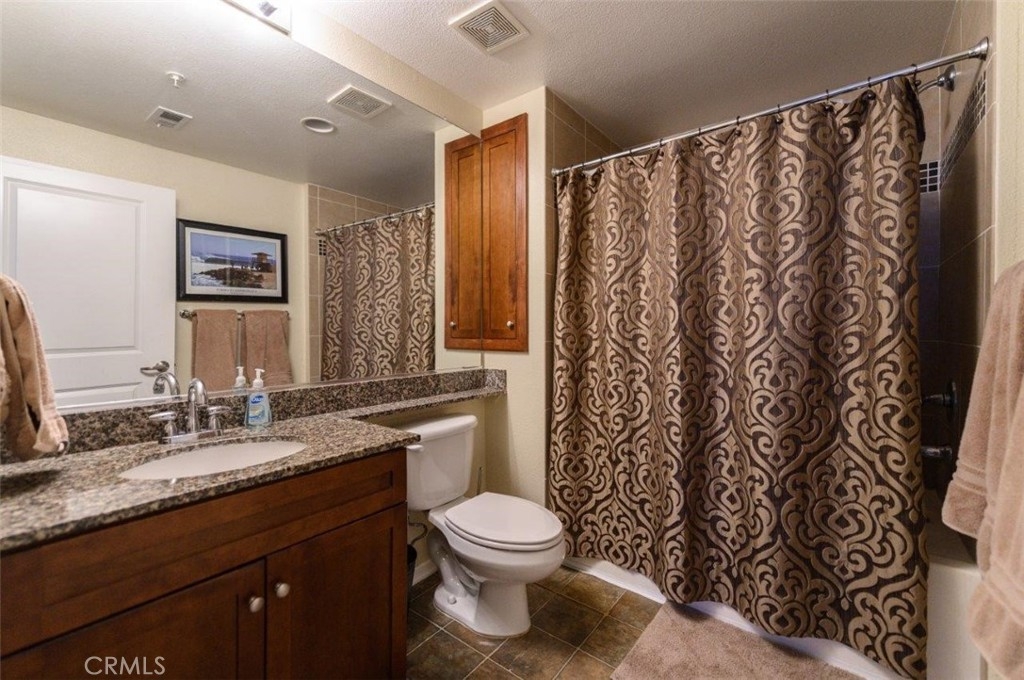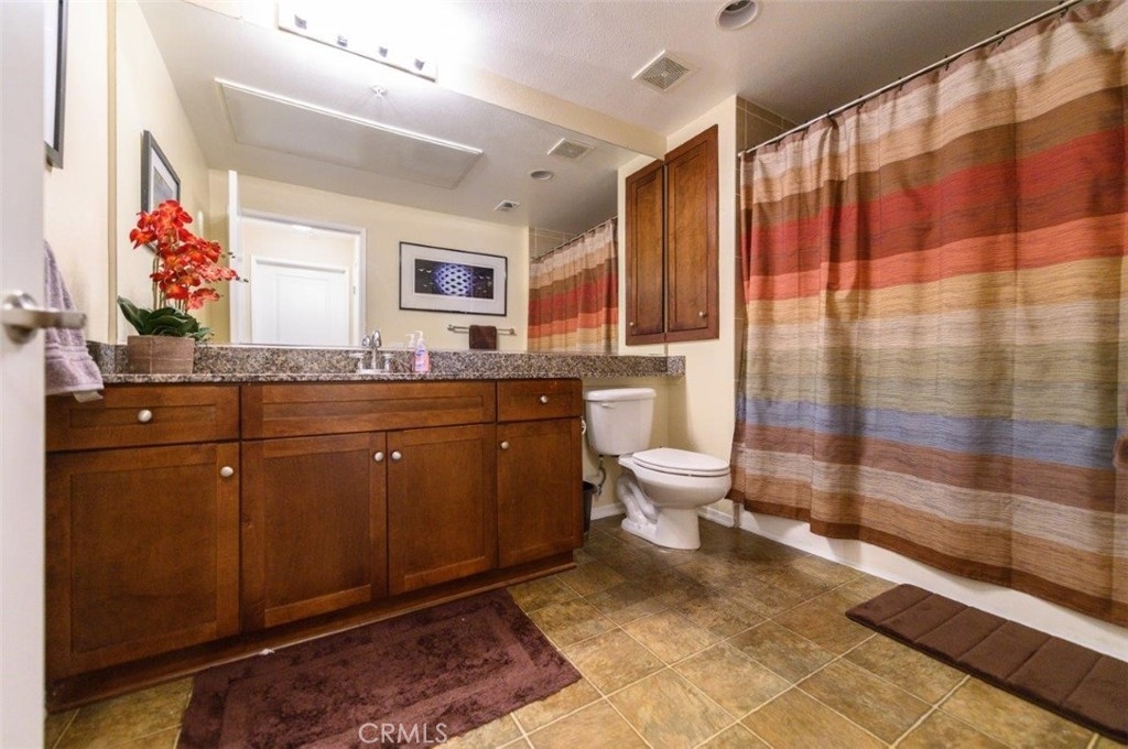 Welcome to Avenue One Condo in Irvine! This unit is on the first floor, it has 2 bedrooms, 2 full baths, main bedroom has 2 large closets one with mirrored sliding doors, the other closet is a double door. This unit has an open floor plan, kitchen has granite counter tops with rich dark wood cabinets. The secondary bedroom has a walk-in closet, sliding glass door to the balcony, and it is next to an over-sized bathroom. Laundry room is next to the kitchen. Washer and Dryer, and refrigerator stays with the unit. Gated parking with 2 spaces for this unit. Amenities in this complex include Olympic sized pool, BBQ areas, fitness room, indoor basketball court, and a state-of-the-art club house equipped with full kitchen, lounge, meeting room, and the on-site management offices, and no Mello-Roos. Close to John Wayne Airport, Fashion Island, South Coast Mall, all sorts of fine dining/eateries, and UCI. Easy to access to 405 and 55 freeway.