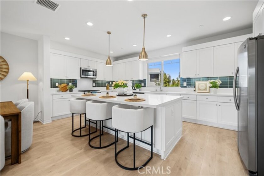 The property is located in Muse at Cadence Park. Offering 2,060 square feet across three beautifully designed levels, this home provides exceptional privacy for your family and effortless entertaining for guests. Enter through a charming front porch into a welcoming foyer featuring a coat closet and additional storage. The first floor includes a conveniently located guest suite with a private bathroom and walk-in closet, along with access to the generous two-car garage. The second level is the heart of the home—an elegant open-concept living space highlighted by a fully equipped gourmet kitchen. Enjoy expansive countertops, a spacious island, and seamless flow into the dining and living areas. The living room is perfect for relaxing movie nights or hosting gatherings, with an adjacent deck offering additional outdoor entertaining space. The primary suite serves as a serene retreat, featuring a spacious bedroom, dual sinks, and a large walk-in shower with built-in bench seating. You can walk to Cadence Park School, and the home is only 3 minutes from Woodbury Plaza, providing exceptional convenience for dining, shopping, and daily essentials.