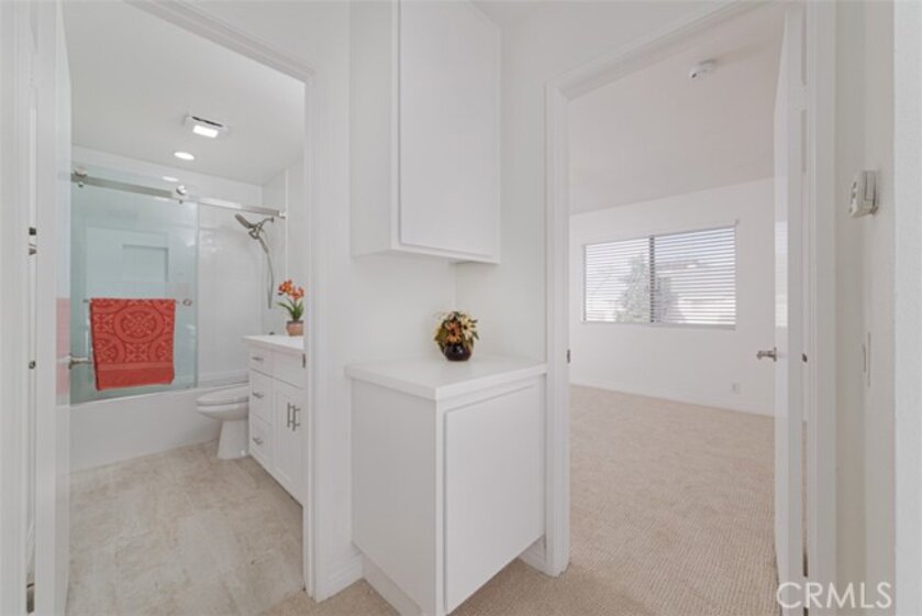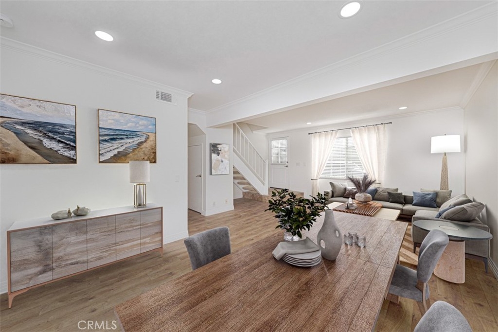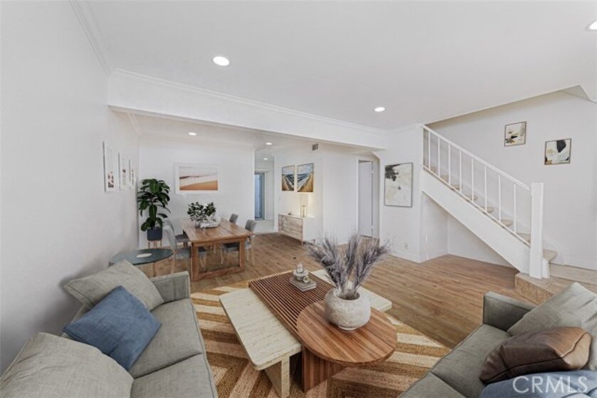Welcome to 12 Thicket, located inside the loop of the sought-after Village of Woodbridge. This BEAUTIFULLY UPGRADED TOWNHOME offers 2 bedrooms and 1.5 bathrooms across 1,098 sq. ft. of comfortable living space. Upon entry, you’re welcomed into a bright, open living area that flows naturally from the living room into the dining space, highlighted by crown molding and wood flooring. Just beyond the dining area, the renovated kitchen features new cabinetry, quartz countertops, a stainless-steel farm-style sink, and GE stainless-steel appliances, including a stove, hood, and dishwasher. The kitchen opens to a breakfast nook with access to the enclosed patio, creating an easy indoor-outdoor connection. The downstairs level also includes an inside laundry and an updated powder room. Upstairs, both bedrooms offer new carpet and modern ceiling fans. The primary bedroom includes a walk-in closet and direct access to the upgraded full bathroom with a glass-enclosed bathtub. ADDITIONAL HIGHLIGHTS: newly custom-painted interior, new tile flooring in the kitchen, breakfast nook, and bathrooms, new carpet, updated lighting with LED fixtures, and new window blinds throughout. From the patio, you have direct access to the two-car carport. The home is served by the highly awarded Irvine Unified School District. Home is located within walking distance to Meadow Park Elementary and South Lake Middle. Woodbridge residents enjoy extensive community amenities, featuring two lakes, two beach lagoons, 22 swimming pools, 16 spas, 13 children's pools, 23 tennis courts, 4 pickleball courts, numerous parks with playgrounds, volleyball courts, an outdoor fitness course, basketball, volleyball, bocce ball, and much, much more. THIS HOME HAS IT ALL!