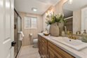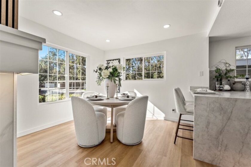 Located in the desirable Woodbridge Village, this beautifully renovated 3-bedroom, 2-bath end-unit offers effortless single-level living on the ground floor. Enter through a private enclosed patio and step into a bright, open floor plan thoughtfully updated throughout. The brand-new kitchen showcases custom oak cabinetry, Taj Mahal quartz countertops, recessed lighting, and new luxury vinyl plank flooring that flows seamlessly through the home. Both bathrooms have been completely remodeled with floor-to-ceiling tile, matching oak vanities, and Taj Mahal quartz counters, creating a cohesive and elevated design. Additional upgrades include new closets, doors, hardware, fresh interior paint, and a brand-new air conditioning unit, ensuring both style and comfort. Each bedroom and the living area are filled with natural light, enhancing the home’s airy feel. The unit includes an assigned covered carport (#165), with ample guest parking available nearby. Ideally situated close to Woodbridge High School, Woodbridge Lakes, Crossroads and Westpark shopping centers, with a short commute to UCI and the Irvine Spectrum. A turnkey opportunity in one of Irvine’s most sought-after communities.