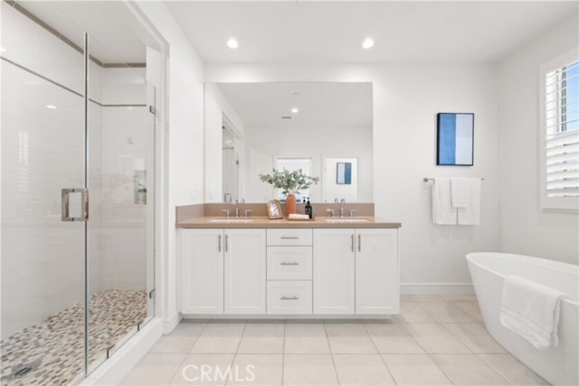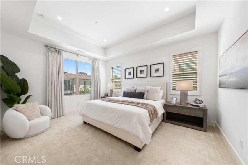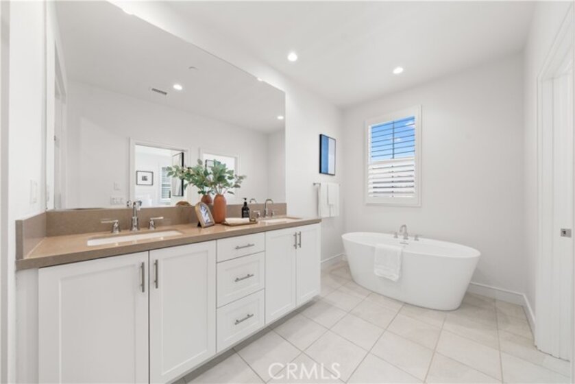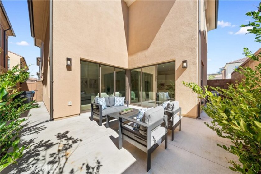 Like a model home, this beautifully upgraded residence is located in the desirable Village of Portola Springs, offering a luxurious lifestyle within a resort-style community. The open and airy layout showcases soaring high ceilings, a first-floor bedroom with an en-suite bath, and an elegant primary suite with stately coffered ceilings. Panoramic sliding glass doors create a seamless indoor-outdoor flow, perfect for entertaining or relaxing. The spacious gourmet kitchen features stainless-steel appliances, soft-close cabinetry, quartz countertops, a large center island, and a walk-in pantry with roll-out drawers. The main level includes a versatile bedroom and full bath—ideal for guests or multi-generational living. Upstairs, you’ll find three additional bedrooms, each with its own private en-suite bathroom. The luxurious primary suite offers a spa-like bath with a soaking tub, walk-in shower, dual vanities, and a generous walk-in closet. Additional highlights include a Tesla solar panel system with Powerwall battery storage, offering both sustainability and energy efficiency. Residents of Portola Springs enjoy access to multiple parks, pools, playgrounds, sports courts, and scenic hiking trails. Conveniently located near award-winning Irvine schools and popular shopping and dining destinations, this home truly combines elegance, comfort, and an exceptional location.