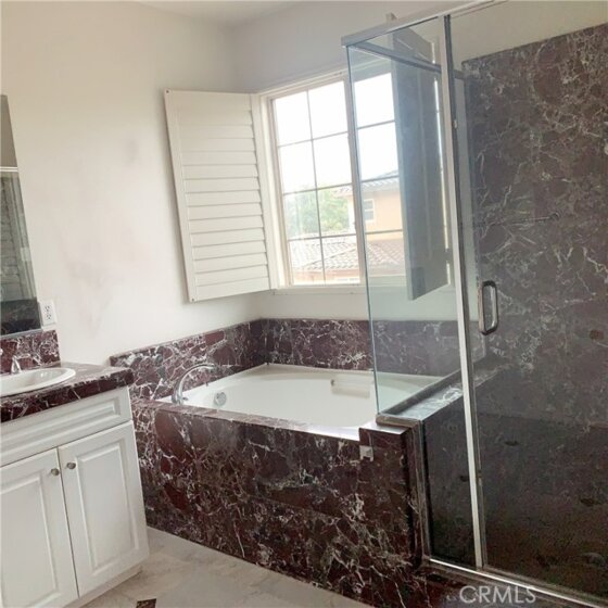 Irvine. Built in 2005. Close to 99 Ranch Market, library and parks. Breathtaking mountain views. Newer 3-bed Condo w/ walk-in closet and a large living room in a nice community. Your own Washer/Dryer. A/C. Granite countertops, a tumbled stone backsplash, plus a huge island.$60,000 in upgrades, 2-car attached garage with massive added overhead storage racks. Luxury landscape. Free access to clubhouse. Spa-style master bath includes separate soaking tub and frameless shower surrounded with custom marble and tile floor. Refrigerator, washer, dryer, 3-D TV are included “as is.” Community features 5 swimming pools, parks, trails, playgrounds, water parks, and tennis courts. Convenient freeway access.
