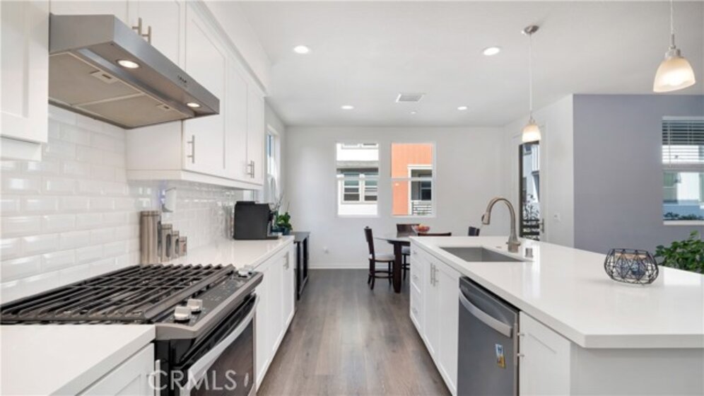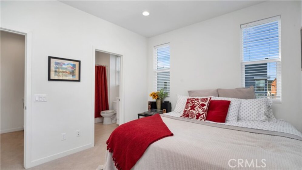 Welcome Home to 125 Allusion – A Modern Paired Townhome with Comfort and Connectivity at Novel Park in the Great Park Neighborhoods. Filled with natural light, this townhome offers over 1,700 sqft of living space and is the perfect blend of modern style and functional living, with the added privacy of only one shared wall on a PREMIUM LOT with building next to or across from the home. Thoughtfully designed for versatility, the main level offers an en-suite bedroom, perfect for a home office or guest room. On the second floor, the open-concept great room is the heart of the home, seamlessly connecting the living, dining, and kitchen areas perfect for both everyday living and entertaining. The chef’s kitchen impresses with white shaker cabinets, sleek quartz countertops, a stylish subway tile backsplash, and a built-in pantry. The center island with counter seating invites casual gatherings, while stainless steel appliances add a modern touch. Just off the great room, step out onto your private patio, offering a perfect extension of your living space ideal for morning coffee, al fresco dining, or simply enjoying the fresh air. Upstairs, you’ll find dual en-suite bedrooms, including a spacious primary suite with two walk-in closets, dual sinks, and an oversized tiled shower. Throughout the home, luxury vinyl flooring enhances the living areas, while upgraded carpet adds warmth to the bedrooms. Additional features include upstairs laundry, whole house fan, LED recessed lighting, a tankless water heater, and a 2-car attached garage for added convenience. Just steps away from Novel Park, you’ll enjoy access to its clubhouse, 2 dog parks, and The Cup, a charming neighborhood coffee shop to meet your neighbors! As a resident of the Great Park Neighborhoods, you’ll experience resort-style living with multiple pools to choose from, neighborhood parks, beach volleyball and basketball courts, outdoor kitchens, playgrounds and 12 rentable spaces for private gatherings. Plus, the Bosque Trail and a network of scenic walking and biking trails weave throughout the community, connecting you to parks, gardens, and recreational spaces perfect for an active, outdoor lifestyle. Located just minutes from award winning IUSD Schools Beacon K-8 and Portola High, and a short drive to Woodbury Town Center, Irvine Spectrum, and Laguna Beach, this home offers unbeatable convenience. Don’t miss your chance to experience elevated living at 125 Allusion.