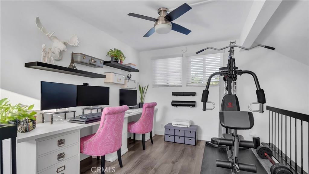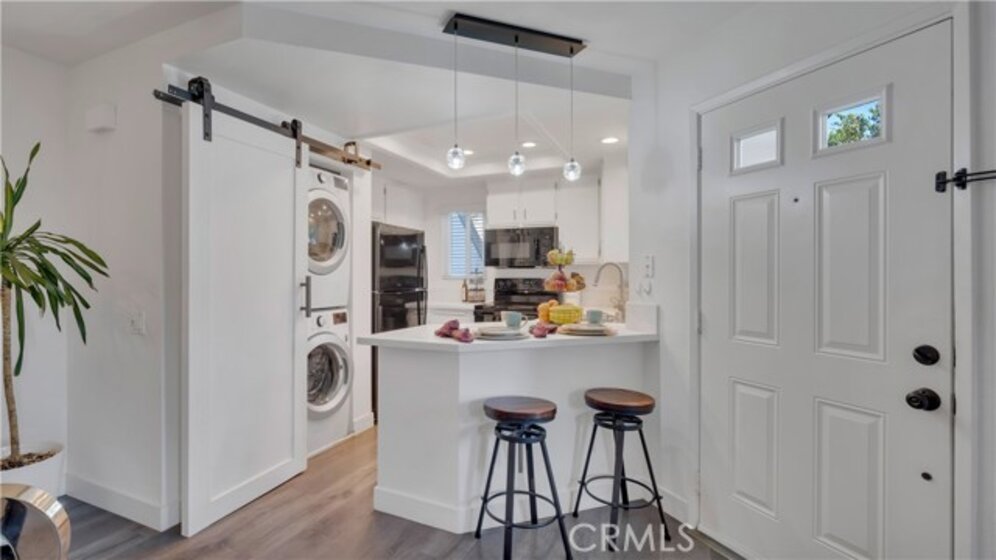 Stylish Woodbridge Condo with Loft & Garage Near South Lake. Welcome to a home with personality and style in the highly sought-after Woodbridge community of Irvine. This thoughtfully updated 1 bedroom, 1 bath home with a loft and one-car garage offers an open floor plan designed for comfortable living and easy entertaining. The main living space features beautiful laminate flooring, a cozy fireplace, and an airy layout connecting the living, dining, and kitchen areas. The updated kitchen shines with quartz countertops and newer appliances, creating a modern space that feels both functional and inviting. The bathroom has also been tastefully updated, highlighted by stylish tile flooring. In the primary bedroom, a hand-stenciled designer accent wall adds a unique artistic touch you won’t see in other homes. Upstairs, the loft is a wonderful flex space currently used as a home office. With plenty of natural light, it’s perfect for working from home, a creative studio, reading nook, or workout area. It can also easily serve as guest space when friends or family come to visit. Start your mornings with coffee on the private balcony, then take a short stroll to the community pool just down the street. Living in Woodbridge means enjoying one of Irvine’s most beloved communities, with two scenic lakes, walking trails, 22 pools, tennis courts, pickleball, basketball, and countless community activities. The home is walking distance to the South Lake Swim Club, where you can watch geese glide in each morning and ducks parade their ducklings each spring. You’ll also love the convenience of nearby shopping, dining, and entertainment, including the Irvine Spectrum, along with easy access to freeways, business centers, and John Wayne Airport. Highly rated Irvine schools, including Woodbridge High School, are also close by. This home offers the perfect blend of style, comfort, and the incredible Woodbridge lifestyle.