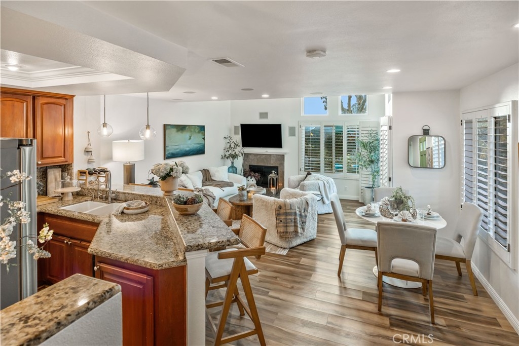 **Exclusive end Unit - This Condo is more like a Single Family Home with extra large size backyard** Experience the perfect blend of luxury and lifestyle in this delightful end unit condo, nestled in the heart of South Lake. This stunning end-unit condo boasts views of Woodbridge Basin and mere steps from South Lake. As you step inside, you'll be enchanted by the bright, open floor plan, vaulted ceilings, and walls of windows that flood the space with natural light. The perfect blend of elegance and warmth, this beautiful home features a cozy gas fireplace, surround sound system, and plantation shutters, creating the ultimate haven for relaxation and entertainment. The expansive patio and adjacent grassy area, accessible from the living room, invite you to soak up the sunshine, enjoy al fresco dining, or simply unwind amidst nature's splendor. Imagine gathering with loved ones, surrounded by the soothing sounds of the basin, and creating unforgettable memories. The gourmet kitchen, complete with breakfast bar and convenient laundry access, is perfect for culinary enthusiasts. The spacious master retreat boasts an impressive wall of closets, mirrored doors, and a serene en-suite bathroom, while the secondary bedroom enjoys its own full bath. As a resident of Woodbridge, you'll enjoy access to a wealth of exceptional amenities, including the beach lagoon, tennis clubs, spa, and top-ranked schools. Don't miss this extraordinary opportunity to own a piece of paradise in one of Irvine's most desirable communities!