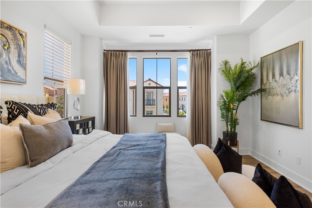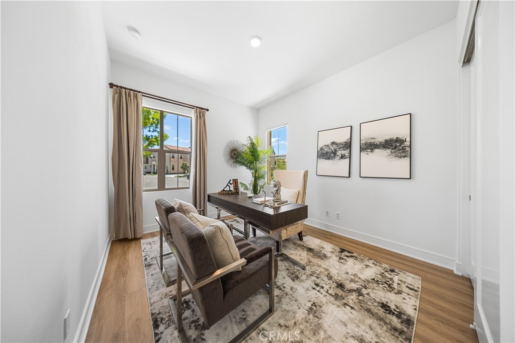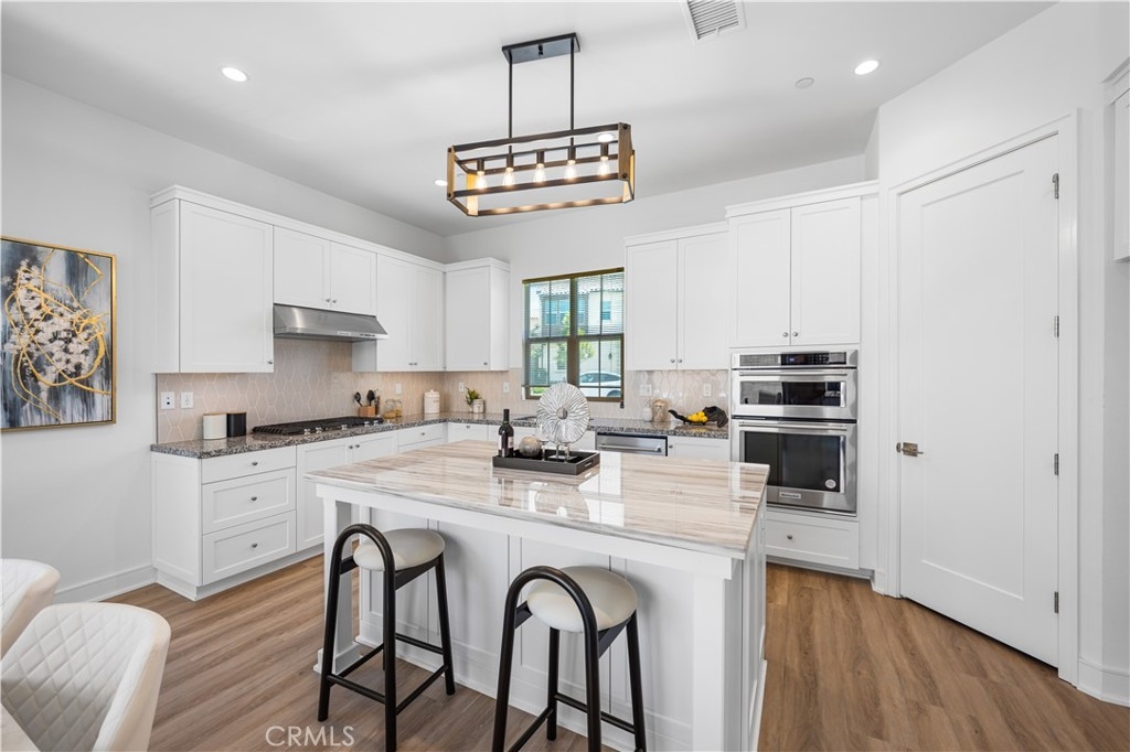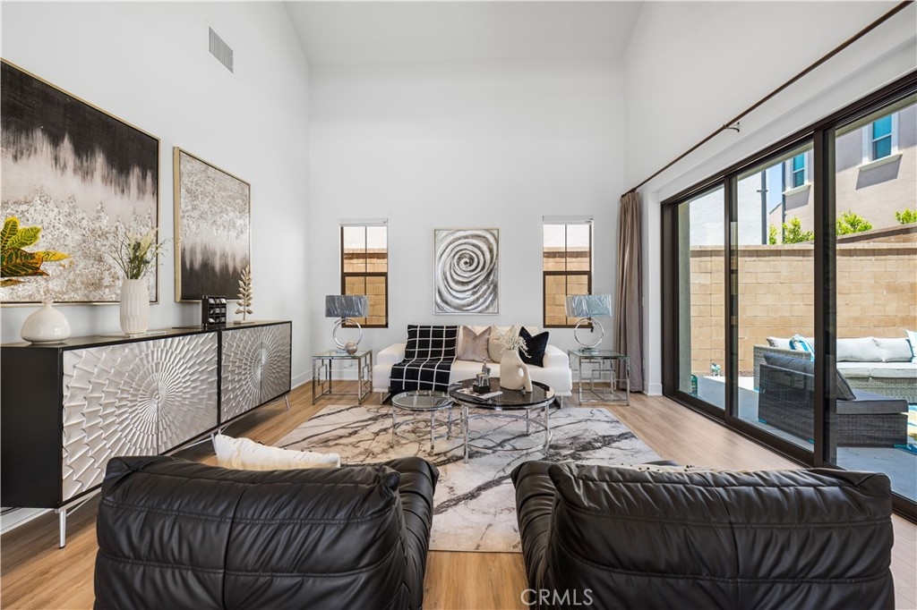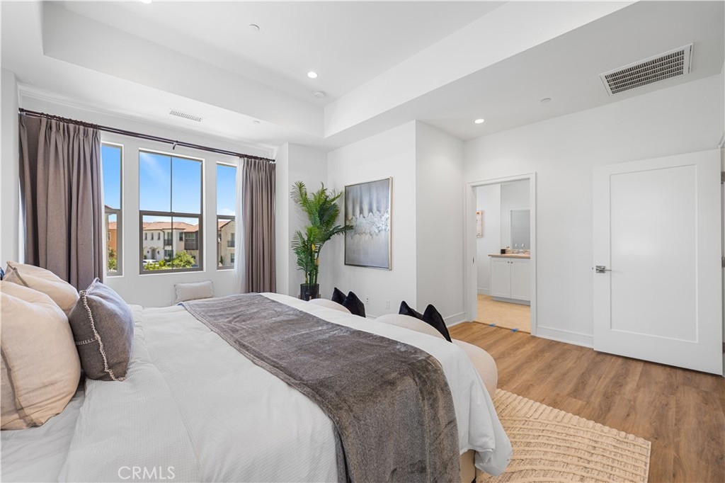 Welcome to Bluffs Plan 1 at Portola Springs. This beautiful home features an open living floor plan with high ceilings, a convenient downstairs bedroom/office, and a gourmet kitchen equipped with top-of-the-line KitchenAid stainless steel appliances, including a cooktop, microwave, and oven. The kitchen boasts granite countertops, and a real stone luxury center island. The entire house is adorned with vinyl flooring, providing both elegance and durability. The laundry room is conveniently located on the same level as the bedrooms, each of which is en-suite with its own attached bathroom. Enjoy a short walk to the community amenities, including pools and parks. This home is situated within the award-winning Irvine School District and is within walking distance to the community pool and park, offering a perfect blend of luxury and convenience.