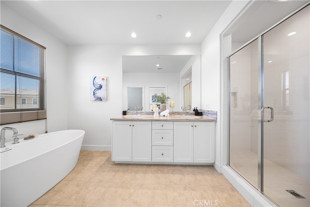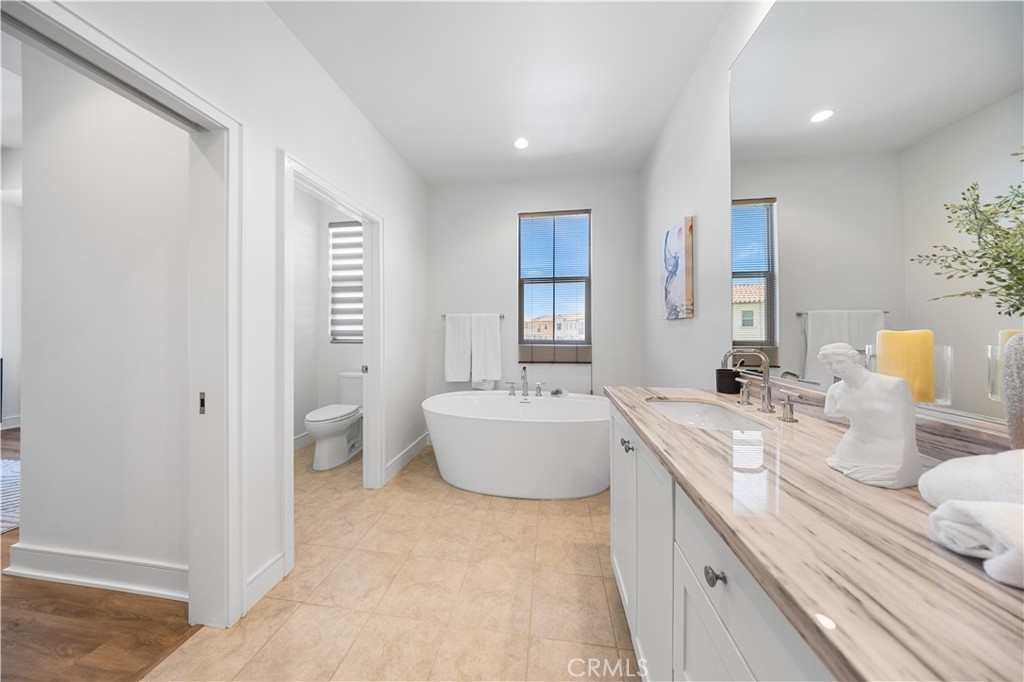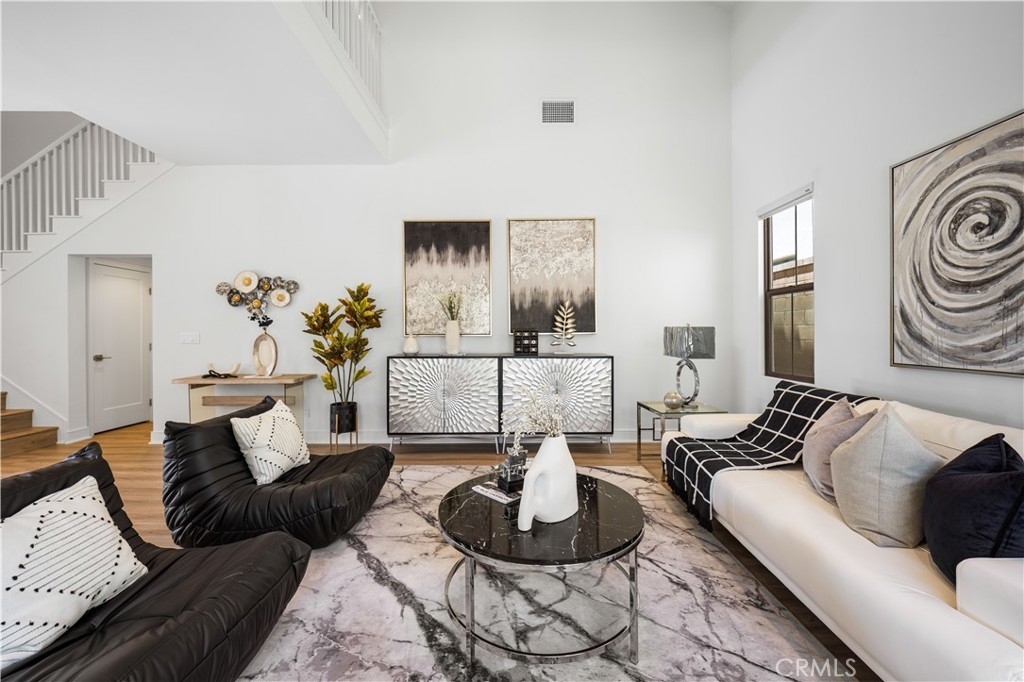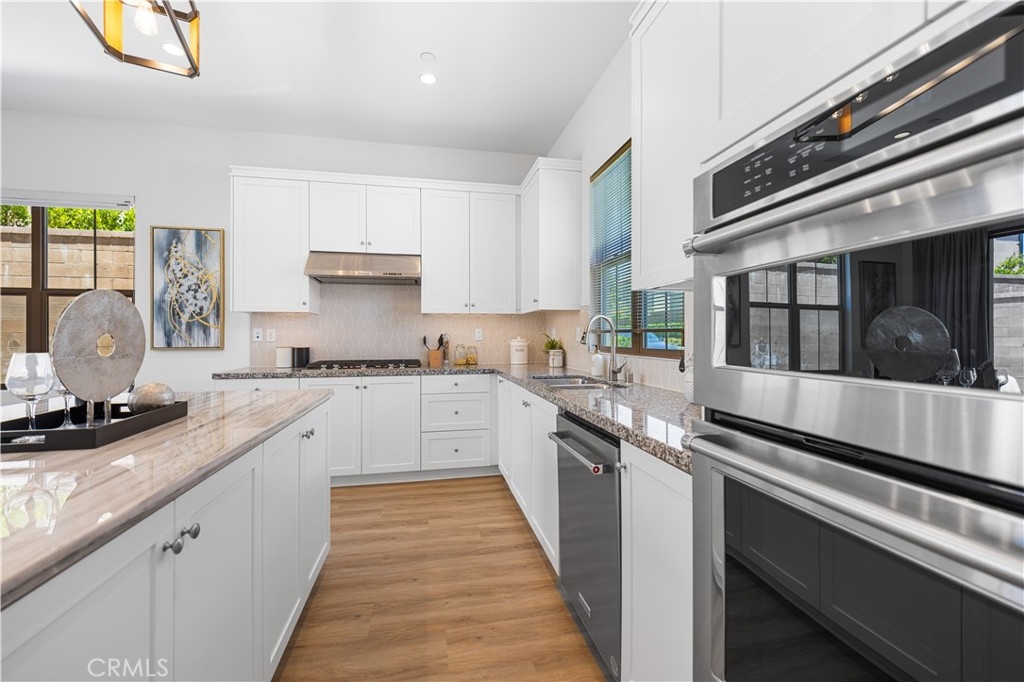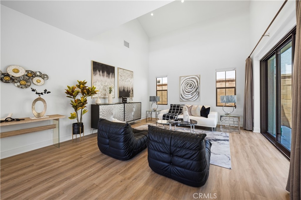 Welcome to Bluffs Plan 1 at Portola Springs. This beautiful home features an open living floor plan with high ceilings, a convenient downstairs bedroom/office, and a gourmet kitchen equipped with top-of-the-line KitchenAid stainless steel appliances, including a cooktop, microwave, and oven. The kitchen boasts granite countertops, and a real stone luxury center island. The entire house is adorned with vinyl flooring, providing both elegance and durability. The laundry room is conveniently located on the same level as the bedrooms, each of which is en-suite with its own attached bathroom. Enjoy a short walk to the community amenities, including pools and parks. This home is situated within the award-winning Irvine School District and is within walking distance to the community pool and park, offering a perfect blend of luxury and convenience.