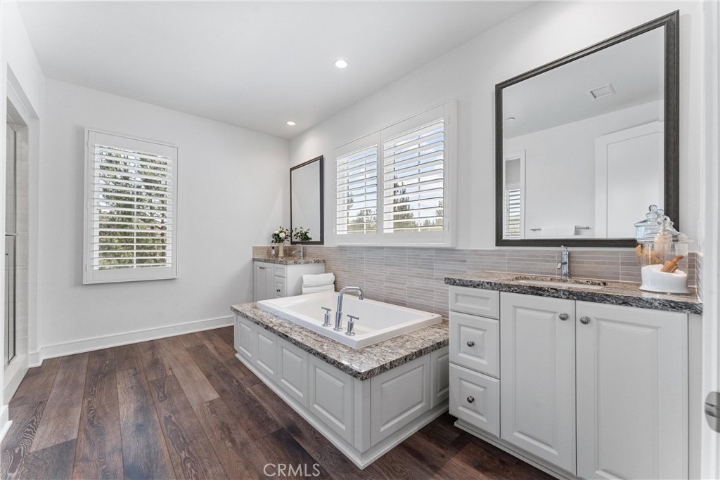 Welcome to this beautifully upgraded detached home, ideally situated within the exclusive gated enclave of Orchard Hills Reserve. Boasting 4 bedrooms and 3 bathrooms—including a desirable main-level bedroom—this residence effortlessly blends refined luxury with everyday comfort. Enter into a bright and expansive great room filled with natural light, highlighted by elegant white porcelain flooring and impressive stacking sliding doors that seamlessly connect indoor and outdoor living spaces. The open-concept kitchen serves as the heart of the home, featuring a striking oversized waterfall island, commercial-grade appliances, designer cabinetry, premium countertops, and a modern backsplash—all carefully curated to achieve a sophisticated contemporary aesthetic. Thoughtful upgrades and attention to detail are evident throughout. The main level’s sleek porcelain floors enhance the home’s airy feel, while rich hardwood flooring extends up the staircase and throughout the second floor. Upstairs, three additional bedrooms and two full bathrooms await, including a luxurious primary suite complete with a deep soaking tub, separate glass-enclosed shower, and dual vanities. With over $170,000 in high-end upgrades, this home offers exceptional value. Enhancements include premium appliances, custom kitchen and bathroom countertops, upgraded electrical and plumbing systems, built-in surround sound, custom cabinetry, designer window treatments, a whole-house water conditioning system. The beautifully landscaped backyard is equally impressive, featuring elegant tile flooring, a cozy fire pit, and added privacy afforded by its premium corner lot location. Located in the highly acclaimed Irvine Unified School District, serving Canyon View Elementary and Northwood High School, residents also enjoy access to resort-style community amenities—including two pools, playgrounds, sports courts, scenic walking trails, and a clubhouse—all within walking distance. This is a rare opportunity to own a move-in-ready luxury home in one of Irvine’s most sought-after communities.