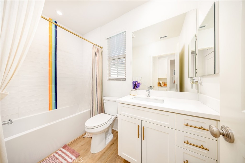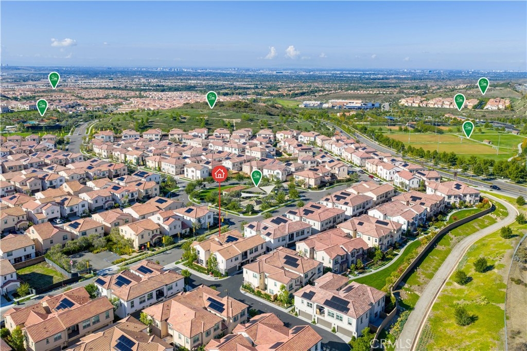 Discover a rare opportunity to own a builder model home, showcasing premium finishes and hand-selected designer upgrades throughout. This beautifully appointed residence offers 2 spacious bedrooms, 2 upgraded bathrooms, soaring ceilings, abundant natural light, and an open, airy layout designed for modern living. As a former model, the home features showroom-quality upgrades, including a gourmet kitchen with Bosch stainless steel appliances, upgraded “White Sand-N” quartz countertops, full-height backsplash, stacked cabinetry with under-cabinet lighting, and a single-basin sink. Additional enhancements include luxury vinyl plank flooring, designer-selected carpet and tile, LED recessed lighting, CAT-6 wiring, upgraded primary bath finishes, and a deck accessible from both the great room and primary suite. Energy efficiency shines with FULLY PAID-OFF SOLAR PANELS and interior insulation upgrades, delivering long-term savings and eco-friendly living. Situated in one of the community’s best locations, the home offers close access to greenbelts, trails, and amenities while maintaining a peaceful and private setting. Enjoy Portola Springs’ resort-style offerings: 15+ pools and spas, lush parks, tennis courts, baseball fields, sand volleyball, and miles of scenic walking and biking paths. Located minutes from shopping, dining, Irvine Spectrum, major freeways, and framed by the beauty of Loma Ridge, this home is also zoned for the award-winning Irvine Unified School District (IUSD), including top-rated schools. With its exceptional upgrades, model home quality, prime location, and paid-off solar, this residence delivers the perfect blend of luxury, convenience, and lifestyle in one of Irvine’s most desirable communities.