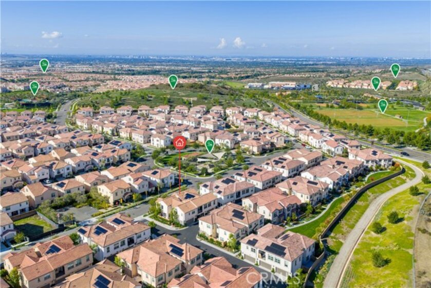 Discover a rare opportunity to own a builder model home, showcasing premium finishes and hand-selected designer upgrades throughout. This beautifully appointed residence offers 2 spacious bedrooms, 2 upgraded bathrooms, soaring ceilings, abundant natural light, and an open, airy layout designed for modern living. As a former model, the home features showroom-quality upgrades, including a gourmet kitchen with Bosch stainless steel appliances, upgraded “White Sand-N” quartz countertops, full-height backsplash, stacked cabinetry with under-cabinet lighting, and a single-basin sink. Additional enhancements include luxury vinyl plank flooring, designer-selected carpet and tile, LED recessed lighting, CAT-6 wiring, upgraded primary bath finishes, and a deck accessible from both the great room and primary suite. Energy efficiency shines with FULLY PAID-OFF SOLAR PANELS and interior insulation upgrades, delivering long-term savings and eco-friendly living. Situated in one of the community’s best locations, the home offers close access to greenbelts, trails, and amenities while maintaining a peaceful and private setting. Enjoy Portola Springs’ resort-style offerings: 15+ pools and spas, lush parks, tennis courts, baseball fields, sand volleyball, and miles of scenic walking and biking paths. Located minutes from shopping, dining, Irvine Spectrum, major freeways, and framed by the beauty of Loma Ridge, this home is also zoned for the award-winning Irvine Unified School District (IUSD), including top-rated schools. With its exceptional upgrades, model home quality, prime location, and paid-off solar, this residence delivers the perfect blend of luxury, convenience, and lifestyle in one of Irvine’s most desirable communities.