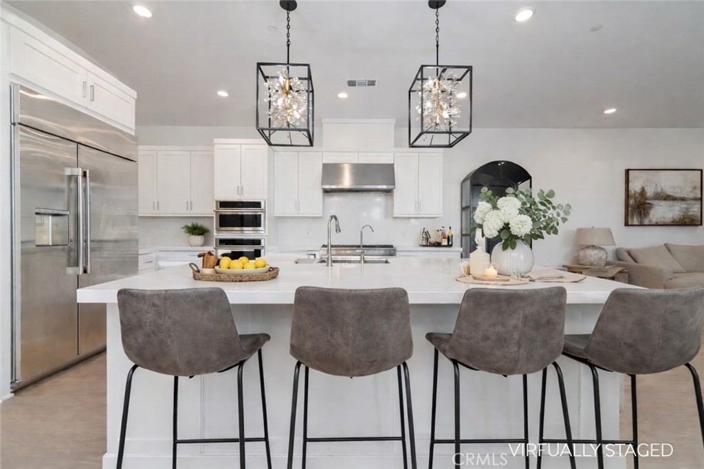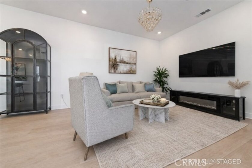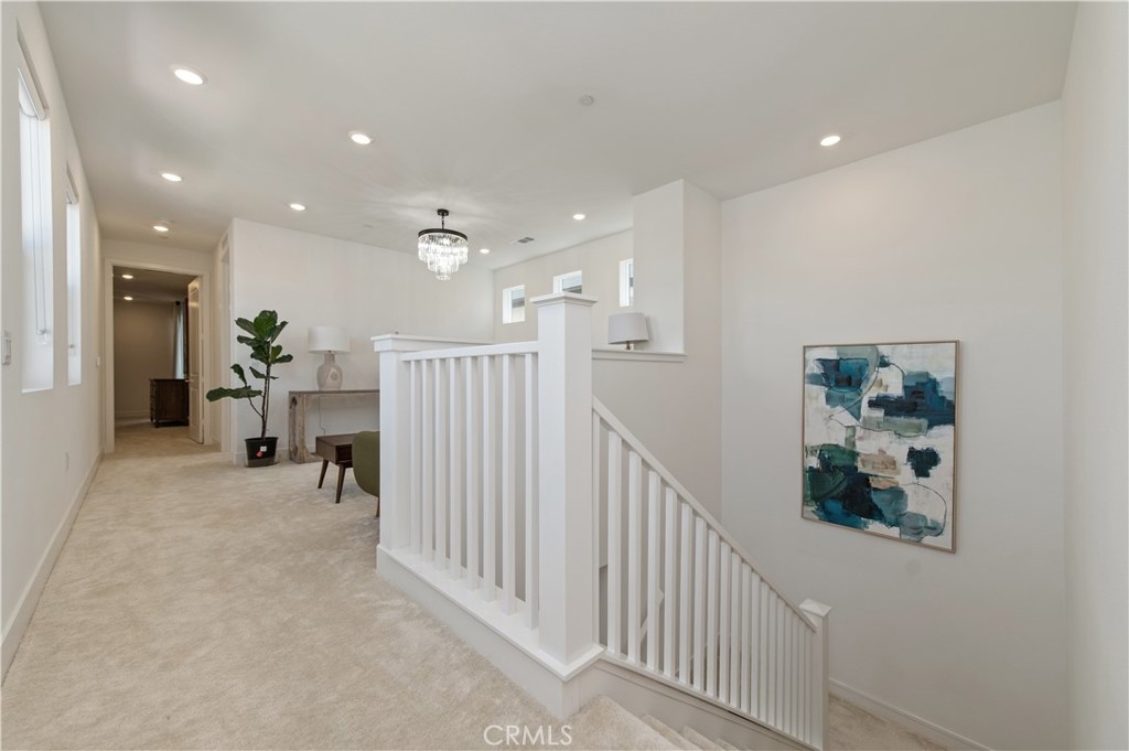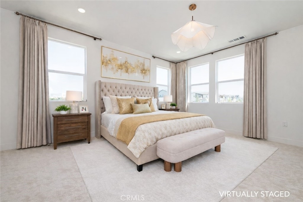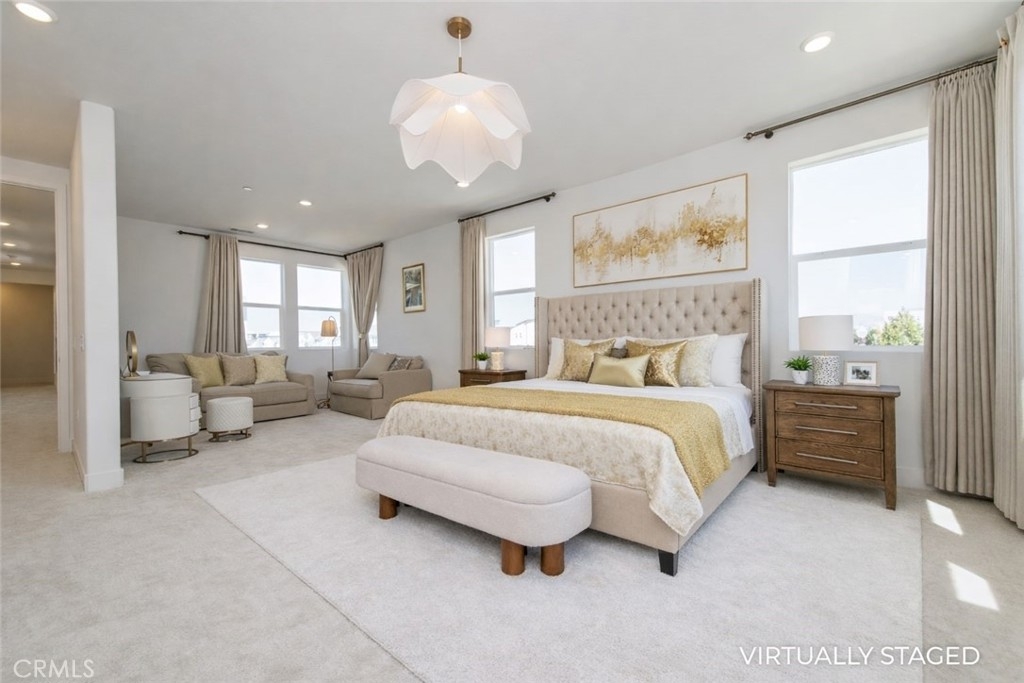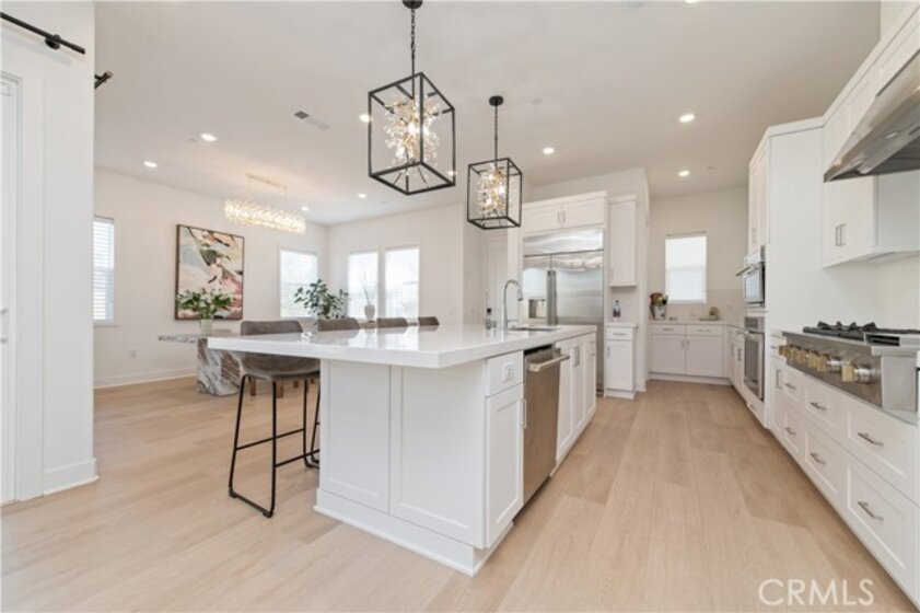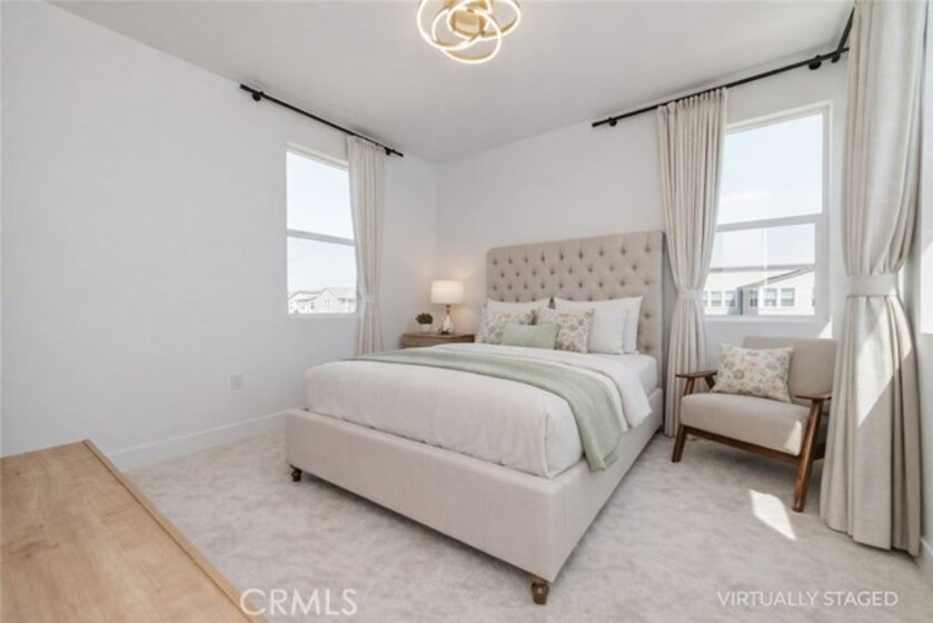 A rare opportunity to own a two-story detached home in the newest Luna Park community! Sits on a corner lot with an unusually large yard and offers 4 bedrooms, 4.5 bathrooms, and a loft, this home offers exceptional privacy, abundant natural light, and one of the largest private yards in the neighborhood. The thoughtfully designed floor plan includes a highly desirable first-floor bedroom suite, ideal for guests or extended family. The main level has been enhanced with upgraded flooring, adding warmth and a clean, cohesive look throughout the living spaces. An open-concept layout connects the kitchen, dining area, and great room, creating a comfortable and functional setting for everyday living and entertaining. The kitchen is equipped with a full suite of built-in appliances, ample cabinetry, and a generous island, offering a modern, streamlined design that integrates naturally with the surrounding living areas. Its practical layout supports both casual meals and larger gatherings with ease. The living room opens to the California room through floor-to-ceiling sliding doors, making the space feel brighter, more open, and visually expanded. Upstairs, the home is anchored by a spacious primary suite with a dedicated retreat, offering a flexible area perfect for relaxation, reading, or quiet downtime. The primary bathroom features a spa-inspired design, complemented by a walk-in closet. Additional bedrooms on the second level are well-sized and thoughtfully arranged, with a loft that adds valuable flexible living space. Located just a short walk from the brand-new Luna Park, this home offers convenient access to parks, walking paths, and community amenities, combining modern design, a versatile layout, and a premium lot setting in one of Irvine’s newest residential communities.