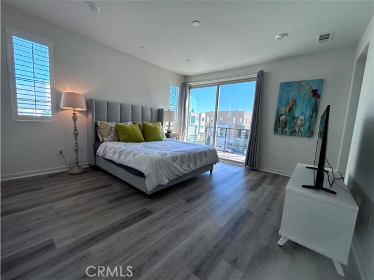 Newer bright and light end-unit townhome of Great Park conveniently located in a quiet neighborhood with easy parking and pedestrian access. Close to shopping, restaurants and freeway access. With upgraded flooring and white wood shutters, this home features a gourmet kitchen with stylish counter-tops, stainless-steel GE Profile appliances including refrigerator and beautiful cabinetry with soft-close hinges. 3 large balconies off the great room, dining room, and master bedroom. First-floor bedroom with full bath. Minutes from 3 award-winning Irvine Unified Schools, wonderful walking & biking trails, dog parks, association pools, spa, playgrounds.
