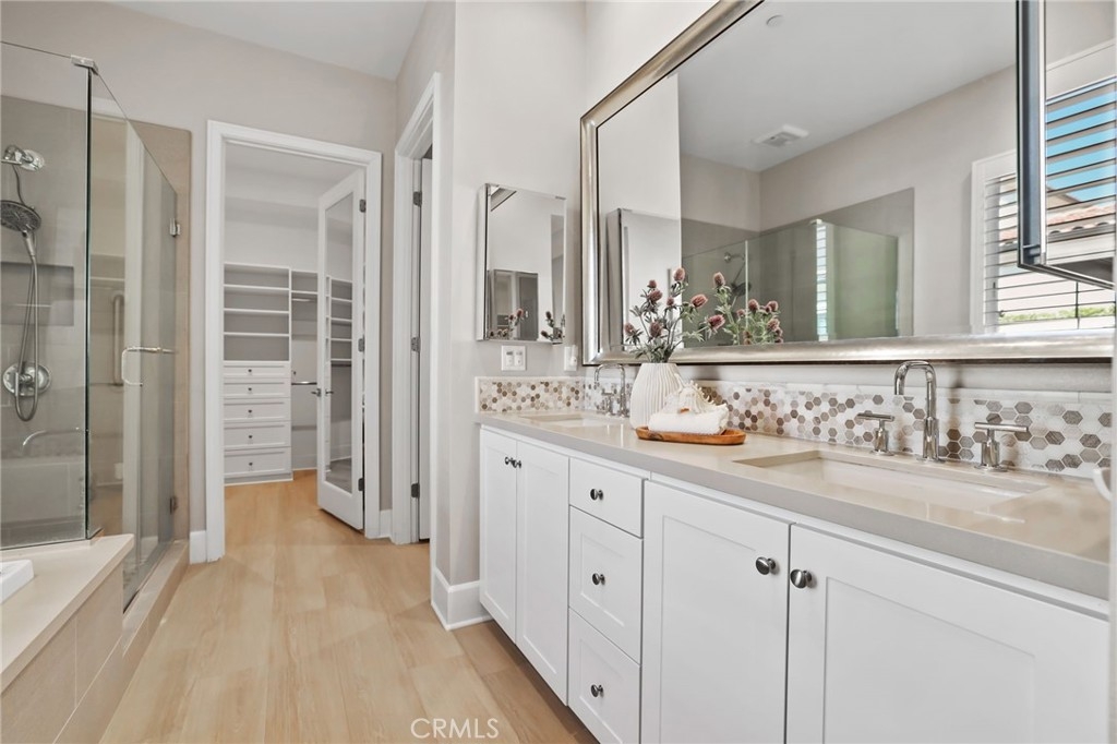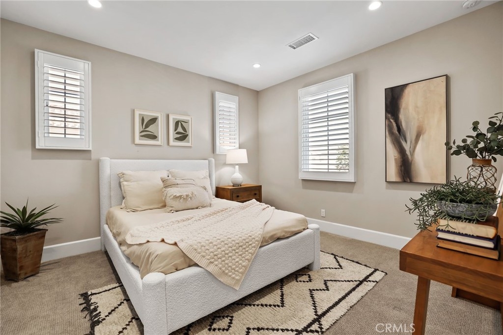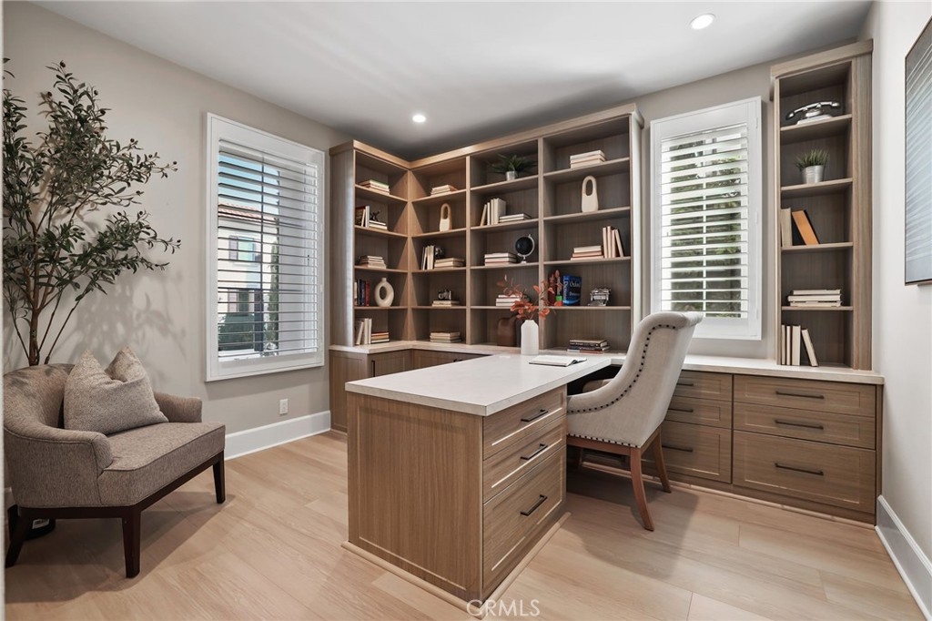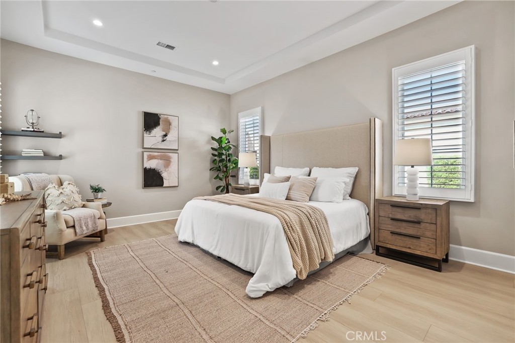Nestled within the prestigious Reserve at Orchard Hills in Irvine, this stunning Tuscan style Detached Verdi home showcases refined elegance and sophisticated living throughout. Thoughtfully designed for both comfort and functionality, the home features a desirable main-level primary suite and dedicated office, while two spacious guest bedrooms upstairs provide comfortable and private accommodations for family and guests. Step inside to discover a beautifully upgraded interior, highlighted by new luxury vinyl plank flooring that spans the main level, creating a warm yet modern ambiance. The designer kitchen serves as the heart of the home, featuring sleek quartz countertops, a spacious center island with pendant lighting, an upgraded designer backsplash, and premium stainless steel appliances, perfect for both everyday living and entertaining. The open concept great room is enhanced by a large panoramic sliding glass door that seamlessly connects indoor and outdoor living, flooding the space with natural light and offering direct access to the backyard. The primary suite offers a serene retreat, complemented by a spa-inspired bathroom complete with a soaking tub, dual vanities, an upgraded walk-in shower, and a custom-organized walk-in closet. Outdoors, enjoy a low-maintenance backyard finished with elegant paver stone flooring, ideal for relaxing or hosting gatherings in style. Community amenities include 2 resort style pools, club house, playground, and sports courts. Feeds into the award winning Irvine Unified School District schools such as Canyon View Elementary and Northwood High School. This exquisite residence presents a rare opportunity to experience the epitome of luxury living. A Must See!