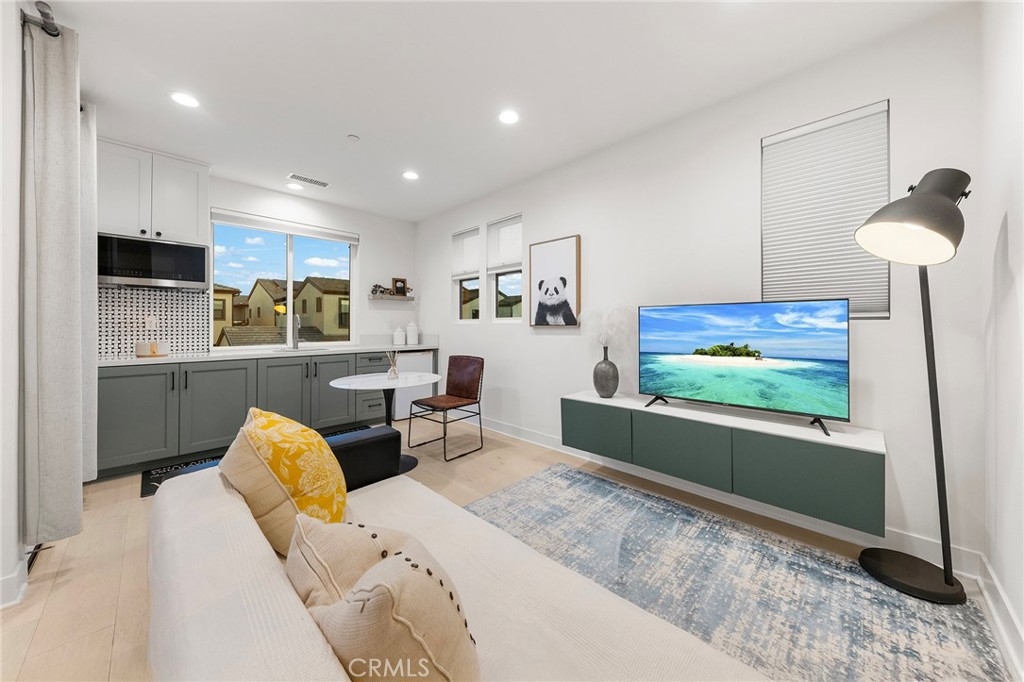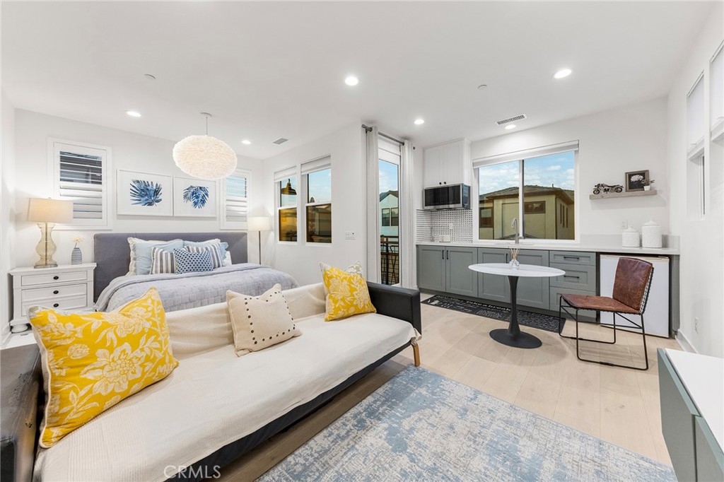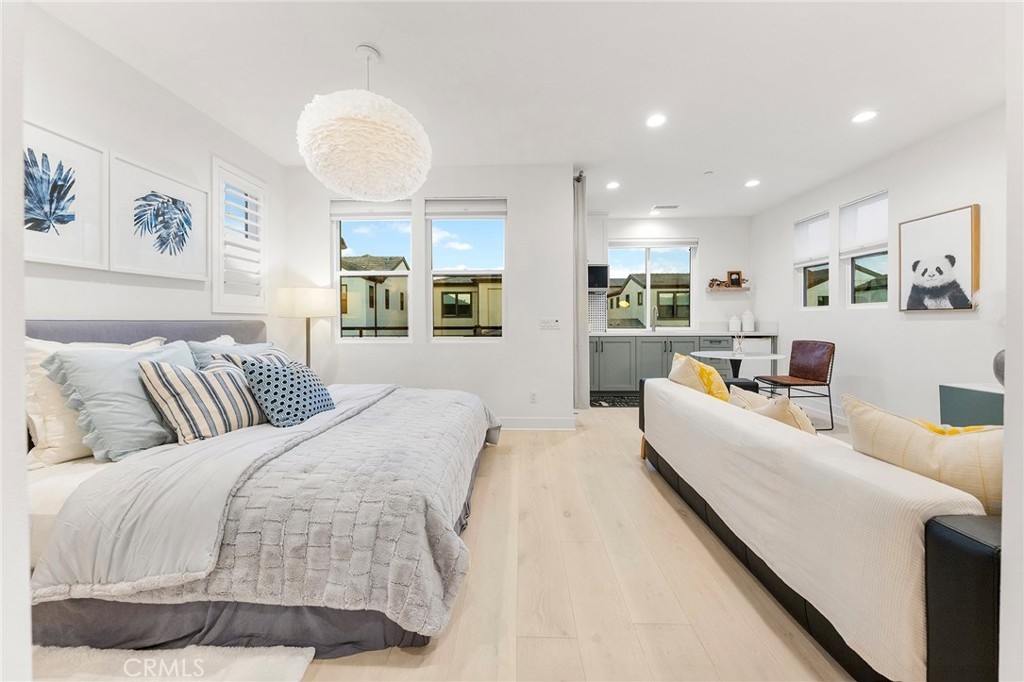 Premium Location +JADU w/ separate entrance (rental/in-law suite) Welcome to 134 Aspect, where contemporary architecture and timeless elegance define the essence of California living. Bathed in natural light and ideally situated within one of Irvine’s most sought-after communities, this stunning home blends sophistication, comfort, and function in every detail. Step inside to discover an open-concept first floor thoughtfully designed with wide-plank hardwood floors, custom wall paneling, Electric window treatments and a sleek modern fireplace — blending warmth, sophistication, and style in perfect harmony. The kitchen flows seamlessly into the dining and living spaces, highlighted by designer lighting and soft natural tones. When the sliding doors open,the indoor and outdoor spaces merge effortlessly, revealing a tranquil central side courtyard that connects every corner of the home with nature — perfect for al fresco dining or quiet evenings under the California sky. A spacious ensuite bedroom on the main level provides comfort and convenience for guests or multi-generational living, while an extra-large under-stair storage area adds practical functionality. Upstairs, huge loft greets you to the primary suite features a luxurious oversized walk-in closet and a private balcony — perfect for morning coffee or sunset relaxation. The JADU studio impresses with its premium finishes, built-in refrigerator, sink, microwave, and range hood, plus a private exterior balcony and staircase and separate entrance — ideal for extended family, guests, or rental income flexibility. The fourth spacious bedroom completes the upper level, highlighted by exceptional natural light and generous scale. The attached two-car garage includes 220V outlet, and a dedicated storage room, adding even more space for organization and lifestyle needs. The premium Chemical reduction and alkaline drinking system protect you from harmness. The home also features a 7.4 kW solar energy system, offering sustainable living and reduced utility costs year-round. Just a short stroll away, residents enjoy access to the beautiful community clubhouse, resort-style pools, and top-rated Irvine Unified schools — including nearby solis elementary and middle school,and Well known Portola high schools, all within walking distance.