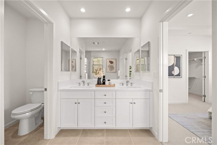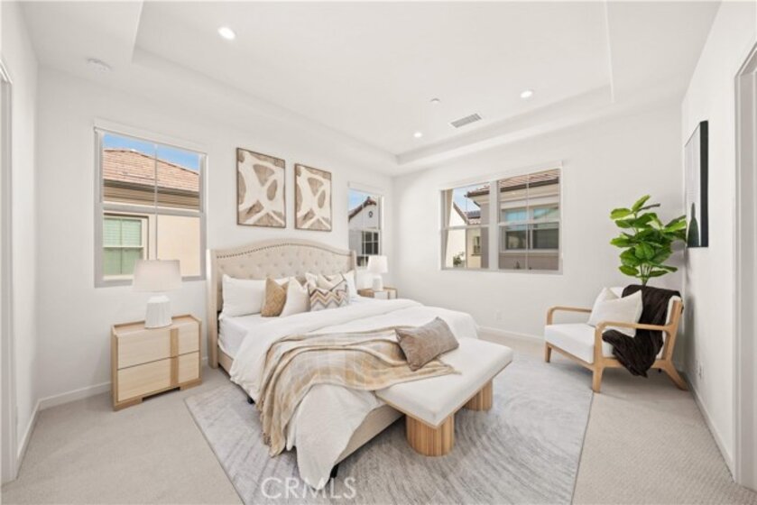 Experience modern living in this beautifully UPGRADED 4 BEDROOMS 4 FULL BATHROOMS home offers a thoughtfully designed layout (EACH BEDROOM PAIRED WITH A FULL BATHROOM) that provides both flexibility and privacy rarely found in the esteemed Portola Springs community. The highly desirable floor plan includes MAIN FLOOR BEDROOM WITH FULL BATH, perfect for guests, extended family, or a private home office. Positioned as a CORNER UNIT, the home enjoys enhanced separation and privacy, with THREE OF THE BEDROOMS SITUATED WITHOUT SHARED WALLS WITH NEIGHBORS — an uncommon feature that adds to the home’s quiet and comfortable feel. A welcoming entry leads into a light-filled OPEN FLOOR PLAN featuring warm-toned vinyl flooring on the main level, upgraded carpeting upstairs, RECESSED LIGHTING & DUAL SHEER SHADES THROUGHOUT. The great room flows beautifully into the dining area and a thoughtfully designed kitchen, complete with a cozy island, quartz countertop, FULL HEIGHT QUARTZ BACKSPLASH, under cabinet task lighting. Upstairs, the primary suite becomes a personal sanctuary, showcasing a freestanding soaking tub, sleek dual vanities, and a walk-in shower that exudes spa-level sophistication. TWO ADDITIONAL BEDROOMS ARE EN-SUITE, EACH WITH ITS OWN PRIVATE BATHROOM, offering privacy and comfort for family and guests alike. Plus a convenient SEPARATE LAUNDRY ROOM WITH SINK & CABINETS complete the second level. High-efficiency upgrades including PAID OFF SOLAR PANELS. JUST STEPS AWAY FROM THE COMMUNITY MONARCH PARK, HILLCREST PARK, HIGHLAND PARK & PORTOLA SPRINGS COMMUNITY CENTER. Located within the highly acclaimed Irvine Unified School District, and just minutes drive to the brand new Loma Ridge Elementary School, and zoned for top rated Portola Springs High School, this home offers not only beauty and comfort but also top-tier educational access. Residents of Portola Springs enjoy access to 15+ amenity-rich parks, scenic walking trails, resort-style pools, pickleball and sports courts, and playgrounds—all moments from home. Easy access to highways 133, 241, and I-5.