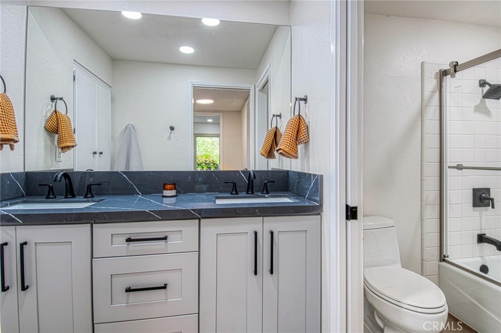 Rare Turtle Rock home located within the desirable Turtle Rock Vista community. This stunning home boasts three bedrooms and two and half bathrooms with an office desirable layout and open floor plan. From the double door front entry there is access to the dining area, living room and kitchen. The home provides for a private office that can also double as a fourth bedroom. The residence offers spacious deck accessibility from both the living room and master bedroom. Abundant windows, skylights, and vaulted ceilings infuse the space with natural light, creating an inviting ambiance. The home showcases upgrades such as renovated bathrooms, new appliances, recessed lighting, and new flooring. A striking marble fireplace graces the living room, adding a touch of elegance. Conveniently situated upstairs, the master bedroom provides vaulted ceilings, a large bathroom with a Roman Tub walk in shower and large walk in closet. The bottom floor bonus room has a bedroom on either side and a full bathroom. The rear patio provides a tranquil spot to enjoy the sunset and easy access to the adjacent pickle ball court and pool and spa facilities. There is an oversized garage with built-in ample storage. Residents have the privilege of attending renowned Irvine Schools, including Turtle Rock Elementary, Rancho San Joaquin Middle, and University High. The property is in walking distance to UCI, Mason Park, shopping centers, and more