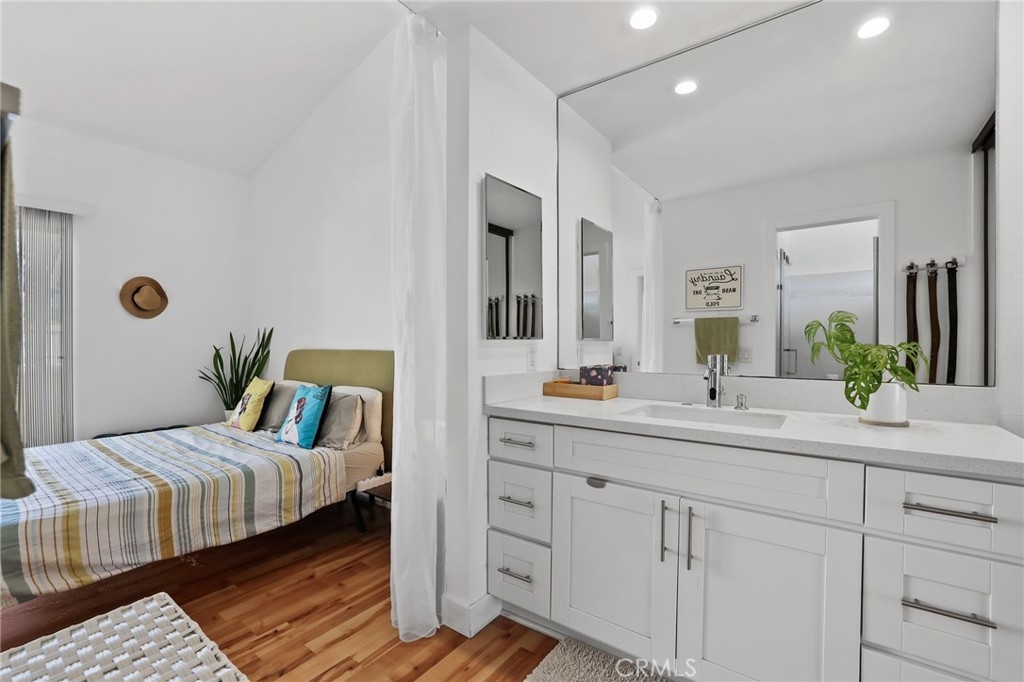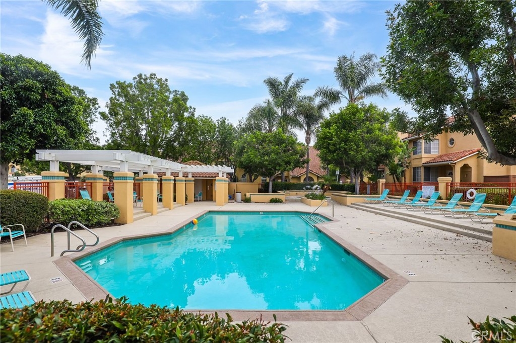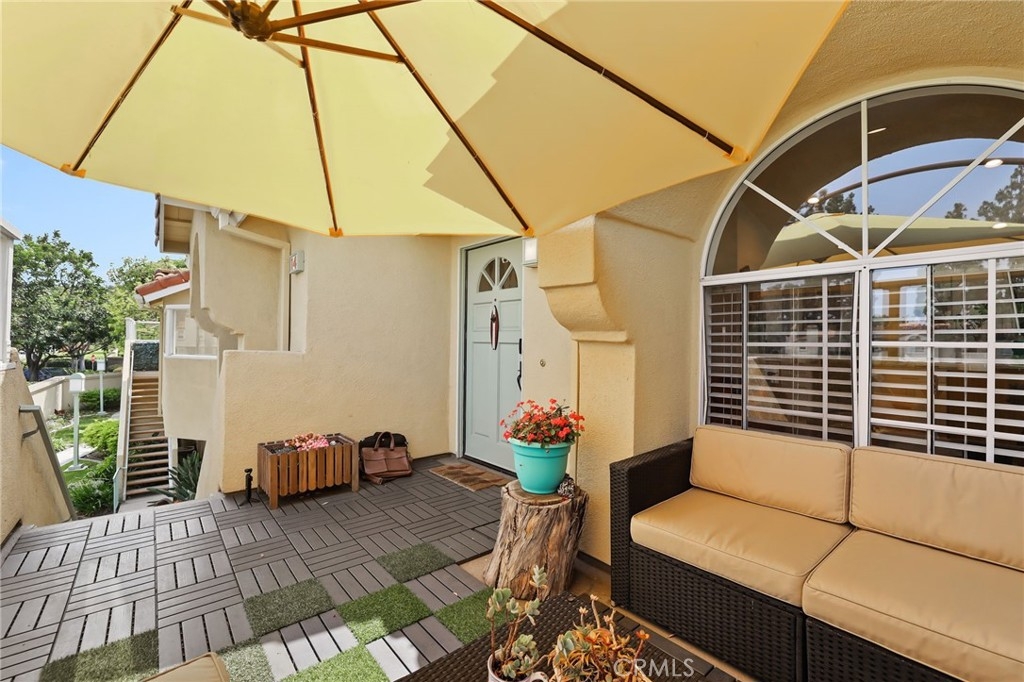 Discover this stunning, completely remodeled upstairs end-unit condo in the Westpark Tiempo community of Irvine. You are welcomed into the bright, open family room featuring a vaulted ceiling and an abundance of natural light pouring into this condo. The family room also has a cozy gas fireplace that seamlessly flows into the dining area, which includes a custom built-in work desk that doubles as a buffet area. The modern kitchen is equipped with quartz countertops and backsplash, white shaker soft-close cabinets, stainless steel appliances, and a deep sink with a custom faucet. The primary bedroom boasts dual closets, sliding doors to a private balcony, and an en-suite bathroom with a quartz-topped vanity and an oversized walk-in shower. The generously sized secondary bedroom with vaulted ceilings is adjacent to the full-hall bathroom. Additional features include closet organizers, Kohler sinks and toilets, touchless faucets in kitchen/primary bath, an indoor laundry closet with a washer and dryer, recessed lighting, scraped ceilings, a new heater pump/Air Conditioner and ductwork, kitchen water filtration system & nest thermostat. Enjoy the spacious front patio, a fully finished one-car garage with epoxy garage floor coating, an outlet for an Electric Vehicle charger, and an additional carport space. There is no one living above or below you! Enjoy community amenities such as a refreshing pool and soothing spa, and benefit from nearby shopping, dining options, and top-rated Irvine schools. No Mello Roos!
