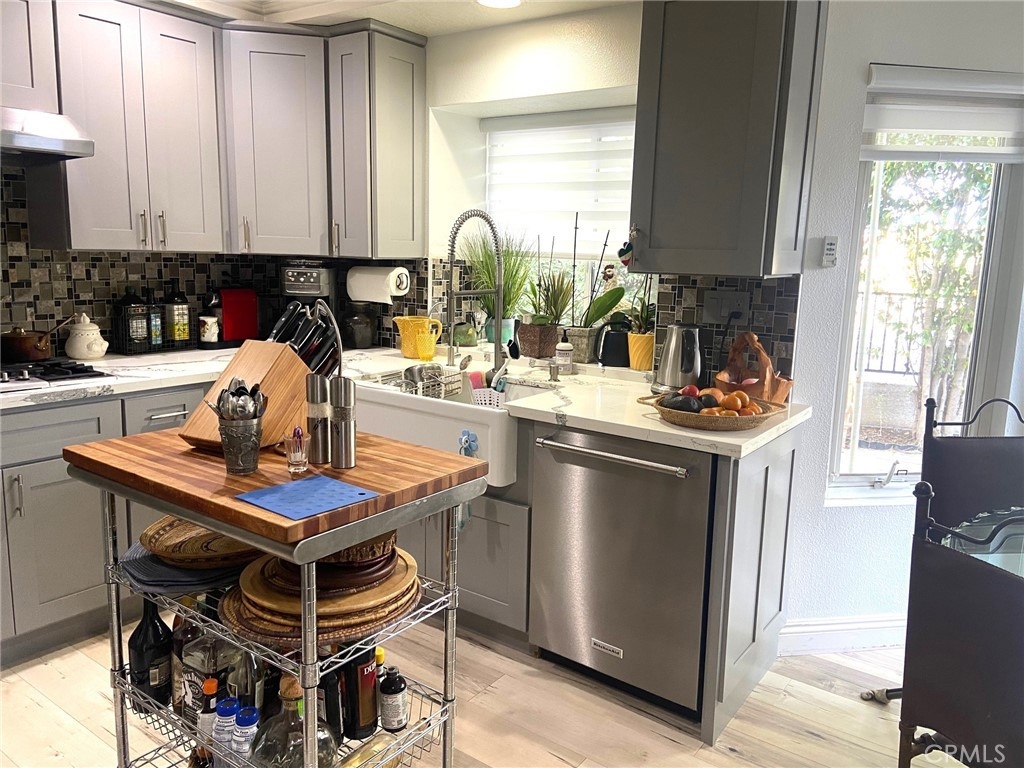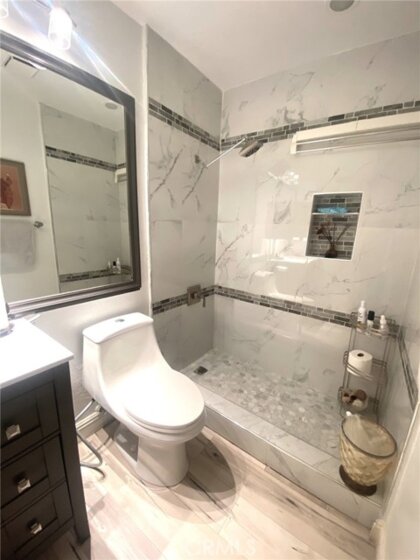 LOCATION! Welcome to 14 RAINBOW LAKE, located within the prestigious Lakeside Community of Woodbridge, just steps away from the South Lake. Updated 3-bedroom (2 Master Bedrooms), 3 full bath home just steps from pools, lagoons, parks, tennis courts, and scenic walking trails! Nestled on a quiet street in one of Woodbridge’s most sought-after neighborhoods within walking distance to the South Lake. This spacious 1,742 sq. ft. home features high ceilings, abundant natural light, and a desirable floor plan with a MAIN FLOOR Bedroom and FULL Bathroom with a walk-in shower! Upgrades include a remodeled kitchen (2023), remodeled bathrooms (2023), new flooring (2023), newer paint (2023), new sliding glass door (2023), new light fixtures (2024), new A/C (2024), and new window coverings (2024). Other notable features include recessed lighting, skylight, stainless steel appliances, convection oven, range hood, dishwasher, and 5-burner gas stove. Including central heat and air conditioning, ceiling fans, full driveway, gated front courtyard, beautiful white built-in garage cabinets. The spacious living room features a modern glass-bead fireplace and vaulted ceilings. Indoor laundry area conveniently located just off the garage entrance. Washer, dryer, and refrigerator are included. Enjoy the private backyard with fruit trees —perfect for entertaining. Double-pane windows provide quiet comfort throughout. Conveniently close to shopping, dining, major freeways, and top-rated Irvine schools. Experience the Woodbridge lifestyle with lakes, lagoons, and resort-style amenities just minutes from your door!