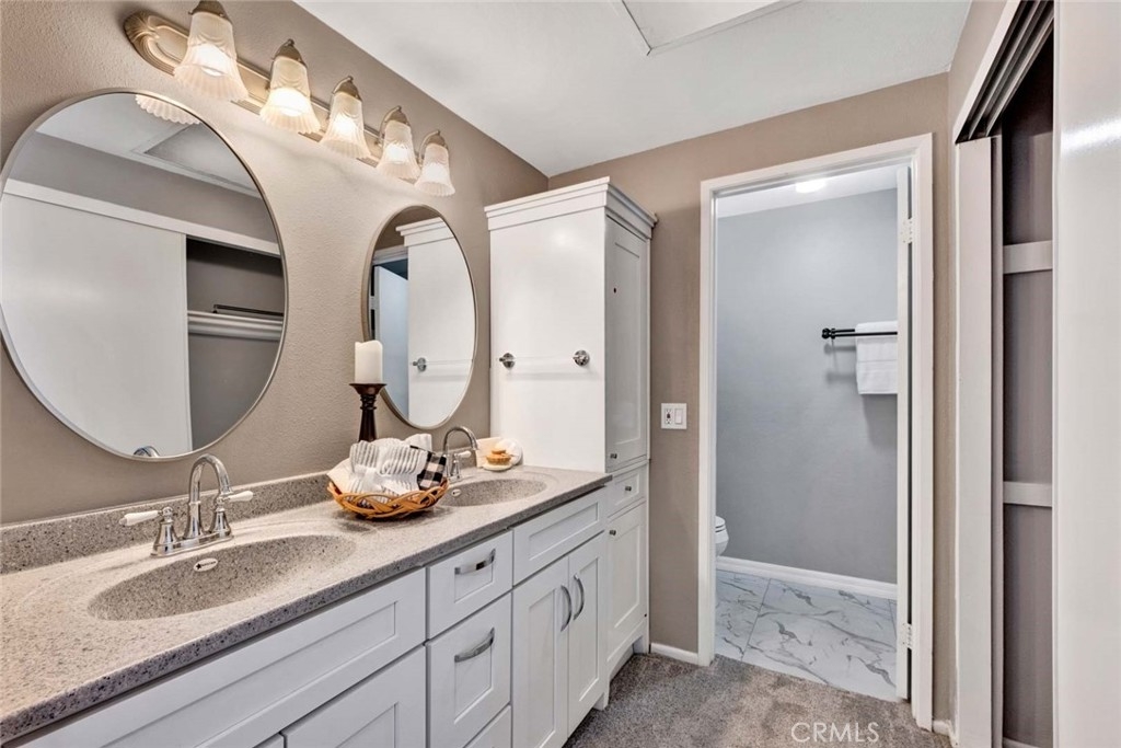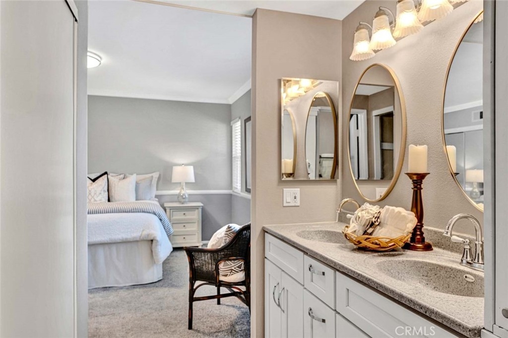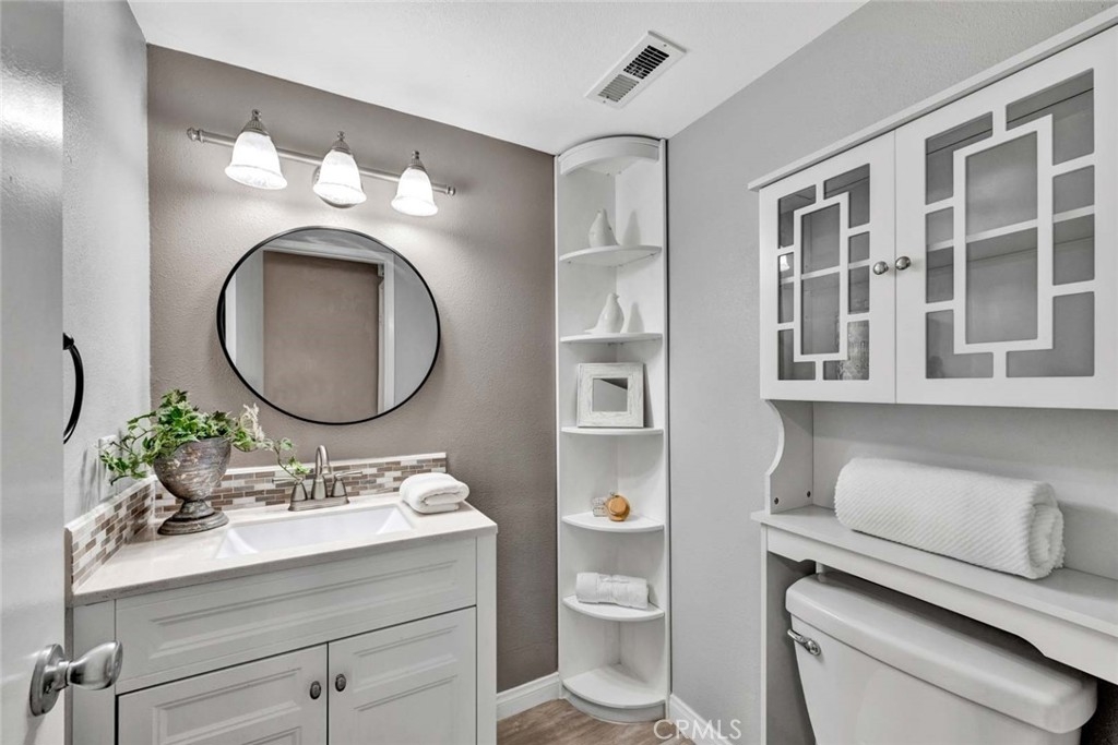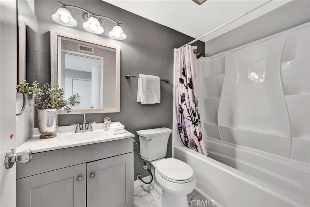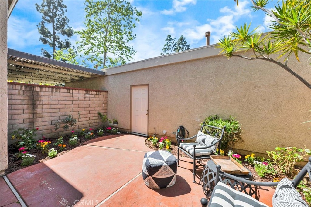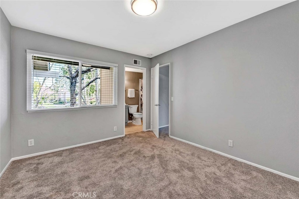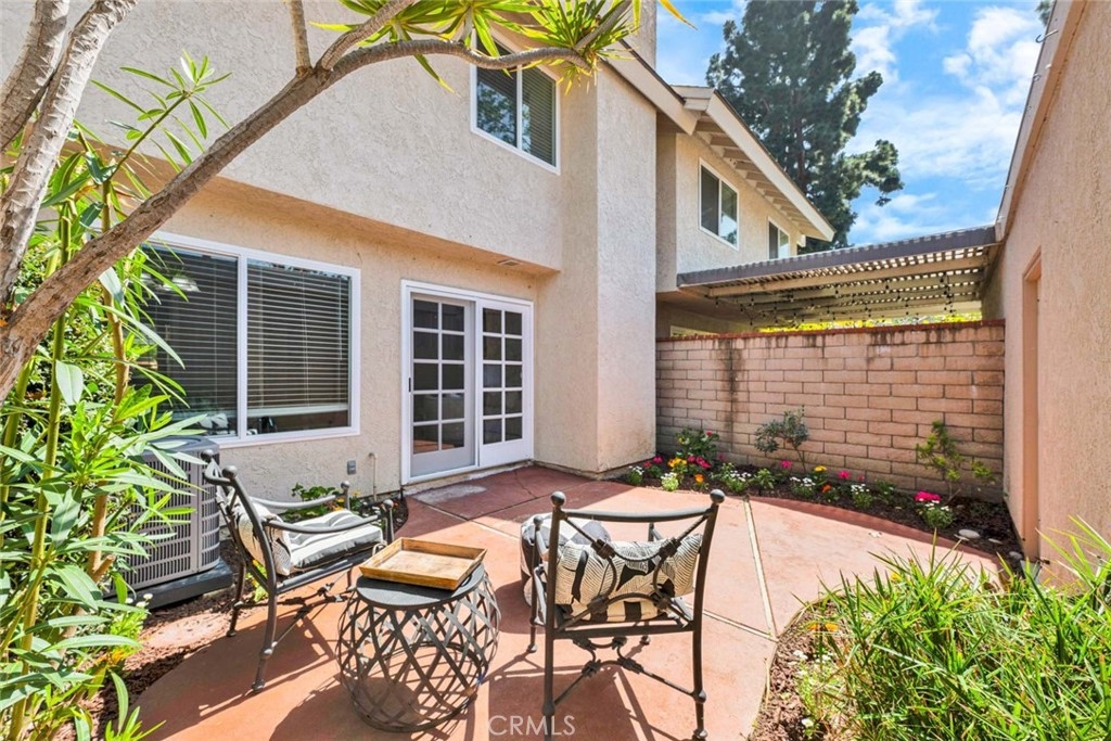 This 2-bedroom, 2.5-bath condo offers modern updates, thoughtful design, and a prime location in a quiet Irvine community. Each bedroom features its own ensuite bath, ensuring privacy and convenience. The remodeled kitchen and bathrooms showcase contemporary finishes, while newer windows and blinds enhance both style and energy efficiency. The living area features a fireplace, creating a warm and inviting space, while the front patio overlooks a peaceful greenbelt, perfect for enjoying the outdoors. A spacious back patio, equipped with automatic sprinklers, offers additional outdoor space for relaxation or entertaining. Additional highlights include direct access to an oversized garage, providing ample storage, and the inclusion of a washer, dryer, and refrigerator for a move-in-ready experience. Ideally situated near top-rated schools, shopping, dining, and major transportation routes.