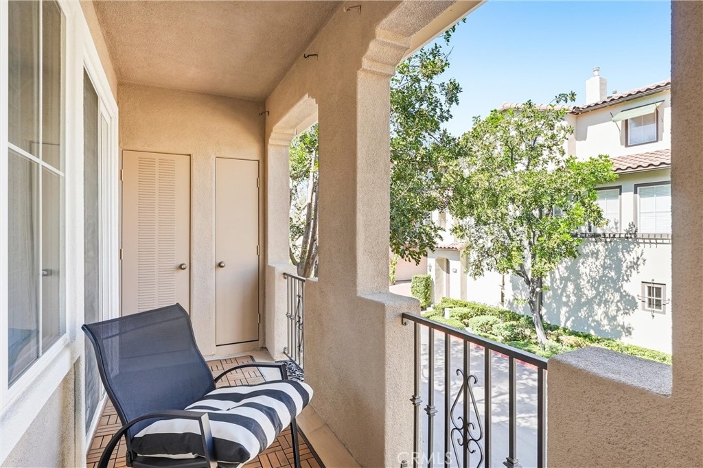 Located on a desirable corner lot within the prestigious guard-gated community of Northpark, this beautifully upgraded residence offers an exceptional blend of elegance, comfort, and modern living. Upon entry, the expansive great room welcomes you with soaring cathedral ceilings and abundant natural light, creating a bright and airy atmosphere. A charming private balcony overlooks lush trees, providing a peaceful setting for morning coffee or evening relaxation. The thoughtfully designed floor plan features a highly desirable main-level bedroom, perfect for guests, a home office, or flexible living needs. The upgraded kitchen is both stylish and functional, showcasing quartz countertops, a custom designer backsplash—ideal for everyday living and entertaining. Privately situated on its own level, the luxurious primary suite offers a tranquil retreat complete with a spa-inspired bathroom featuring dual vanities, a relaxing soaking tub, and a separate walk-in shower. Additional upgrades throughout the home enhance both comfort and sophistication, including luxury laminate flooring, elegant plantation shutters for refined light control, and mirrored closet doors that add both style and functionality. The home also includes a newer refrigerator, as well as a newer washer and dryer for added convenience. Residents of Northpark enjoy access to exceptional resort-style amenities, including five sparkling pools and spas, three lighted tennis courts, playgrounds, sports courts, a clubhouse, and the security of 24-hour guard-gated entry. This is a rare opportunity to own a beautifully upgraded home in one of Irvine’s most sought-after communities.