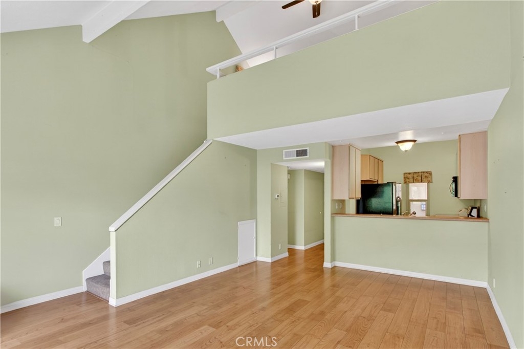 $50,000 PRICE REDUCTION! One bedroom AND LOFT upper unit condo is conveniently located near Irvine Valley College. This home features a spacious living and dining area with soaring ceilings and a sliding door opening to the private deck. The kitchen opens to the living area and comes with a refrigerator and Bosch dishwasher. There is a spacious primary bedroom with lots of closet space and more additional closet space in the hallway. The bathroom features an enclosed tub/shower. A roomy loft is perfect for a home office, guest retreat, exercise area or any number of uses. Additional storage was added under staircase and off loft, so there is lots of room for belongings! The property has an interior washer & dryer that are included in the sale. An assigned carport is nearby the property and there are numerous unassigned parking spots for visitors. Meandering streams throughout the complex make for a peaceful & serene environment. HOA fees include water, trash and exterior maintenance. The neighborhood is currently undergoing wood repairs, maintenance & painting, but the building this unit is located in has already been completed. Probate sale, peaceful death on the property. Property is being sold AS IS, full authority probate.