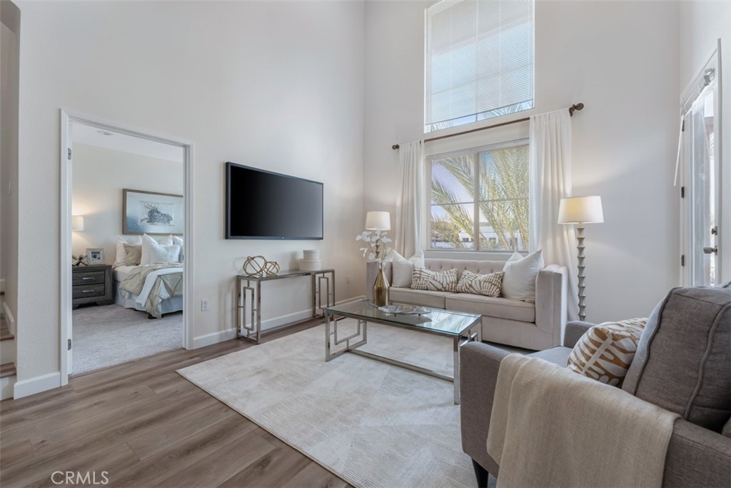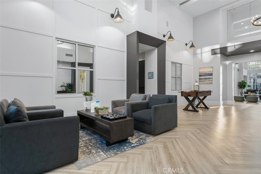 Experience refined urban living in this exceptional top-floor luxury residence located in Avenue One, in Irvine, one of the most prestigious, safest, and master-planned cities in the state. Known for its award-winning schools, walkable neighborhoods, cultural diversity, and premier city amenities, Irvine offers an unmatched Southern California lifestyle. This private top-level unit features no neighbors above, ensuring tranquility and exclusivity. The home showcases a dramatic high-ceiling living room filled with natural light, complemented by recessed lighting and a seamless open-concept kitchen, perfect for elegant entertaining and everyday sophistication. Enjoy outdoor living spaces, including a rear private patio/ balcony with street views. The thoughtfully designed floor plan offers two generously sized bedrooms and two full bathrooms, enhanced by a versatile loft space that functions beautifully as a third bedroom, executive home office, or creative studio. This residence has been meticulously remodeled with brand-new luxury vinyl plank wood flooring, modern baseboards, and fresh designer interior paint, delivering a turnkey, contemporary aesthetic. Residents enjoy access to resort-quality HOA amenities, beginning with a luxurious resident lounge with service kitchen, elegant seating areas, sparkling pool and spa, tennis and basketball courts, and retail shops just steps away. Perfectly positioned near major freeways, shopping centers, fine dining, public parks, and entertainment, this home blends luxury condo living, walkability, and convenience in one of Orange County’s most desirable communities. A rare opportunity to own a turnkey luxury home in one of California’s most coveted cities. NO MELLO ROOS!