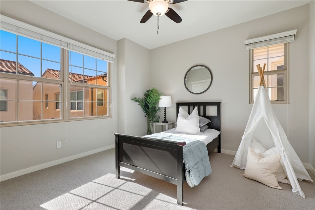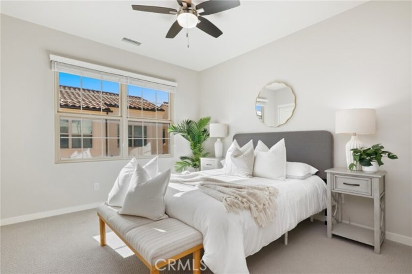 Welcome to 147 Excursion, a stunning detached two-story townhome nestled in the sought-after community of Portola Springs. Boasting a highly functional floor plan, this residence features three bedrooms, an upstairs loft, 2.5 bathrooms, and two private patio spaces. Upon entry, you’ll notice the open-concept layout enhanced by upgraded tile flooring, recessed lighting, and an abundance of natural light from large windows and a sliding door. The spacious kitchen is appointed with ample cabinetry, a large center island, a stylish backsplash, and stainless steel appliances, including a Bosch built-in microwave and a Bertazzoni oven and range. Direct access to the attached two-car garage from the kitchen adds everyday convenience, while the adjacent dining area flows seamlessly into the living room—ideal for both daily living and entertaining. All three bedrooms are located upstairs, along with a versatile loft space and a convenient indoor laundry room. The primary bedroom suite is privately situated at the end of the hallway and features a walk-in shower, walk-in closet, and dual sinks. As part of the Portola Springs community, residents enjoy access to an impressive array of HOA amenities, including Greenfield Park and Village Square Park, featuring a club room, junior Olympic swimming pool, wading pool, spa, tot lot, basketball court, tennis courts, and barbecue/picnic areas. Conveniently zoned for Portola Springs Elementary, Jeffrey Trail Middle School, and Portola High School, this home offers an exceptional opportunity to enjoy the best of Southern California living. Don’t miss this outstanding offering!